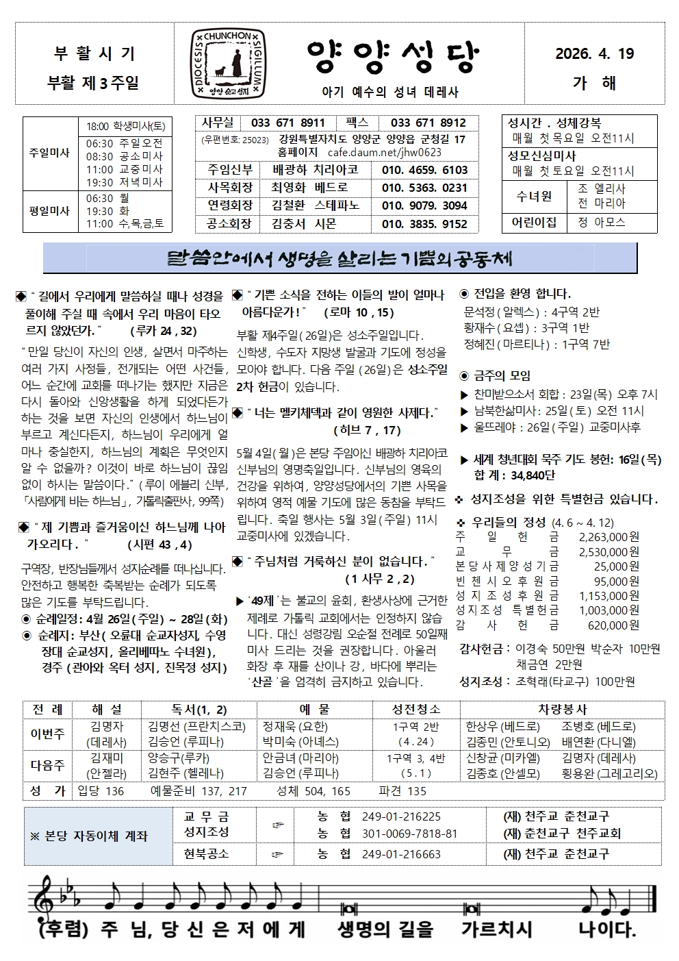 양양 - 2026년 4월 19일 부활 제3주일