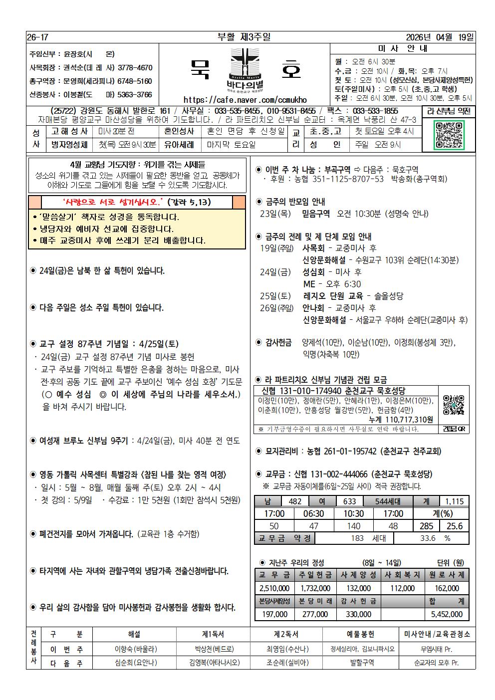 묵호 - 2026년 4월 19일, 부활 제3주일