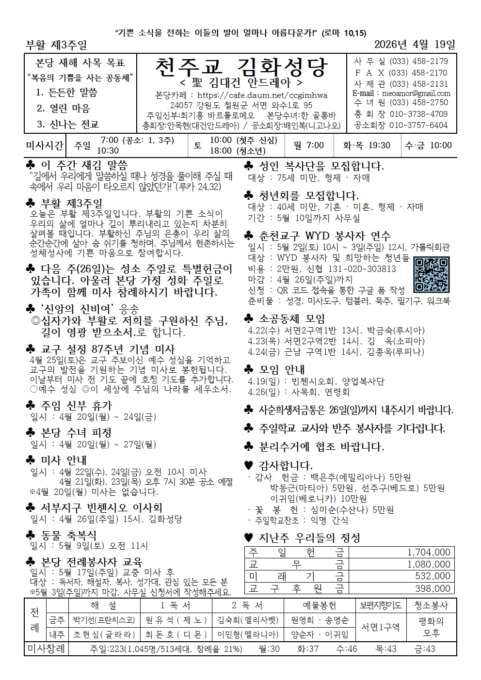 김화 - 2026년 4월 19일 부활 제3주일