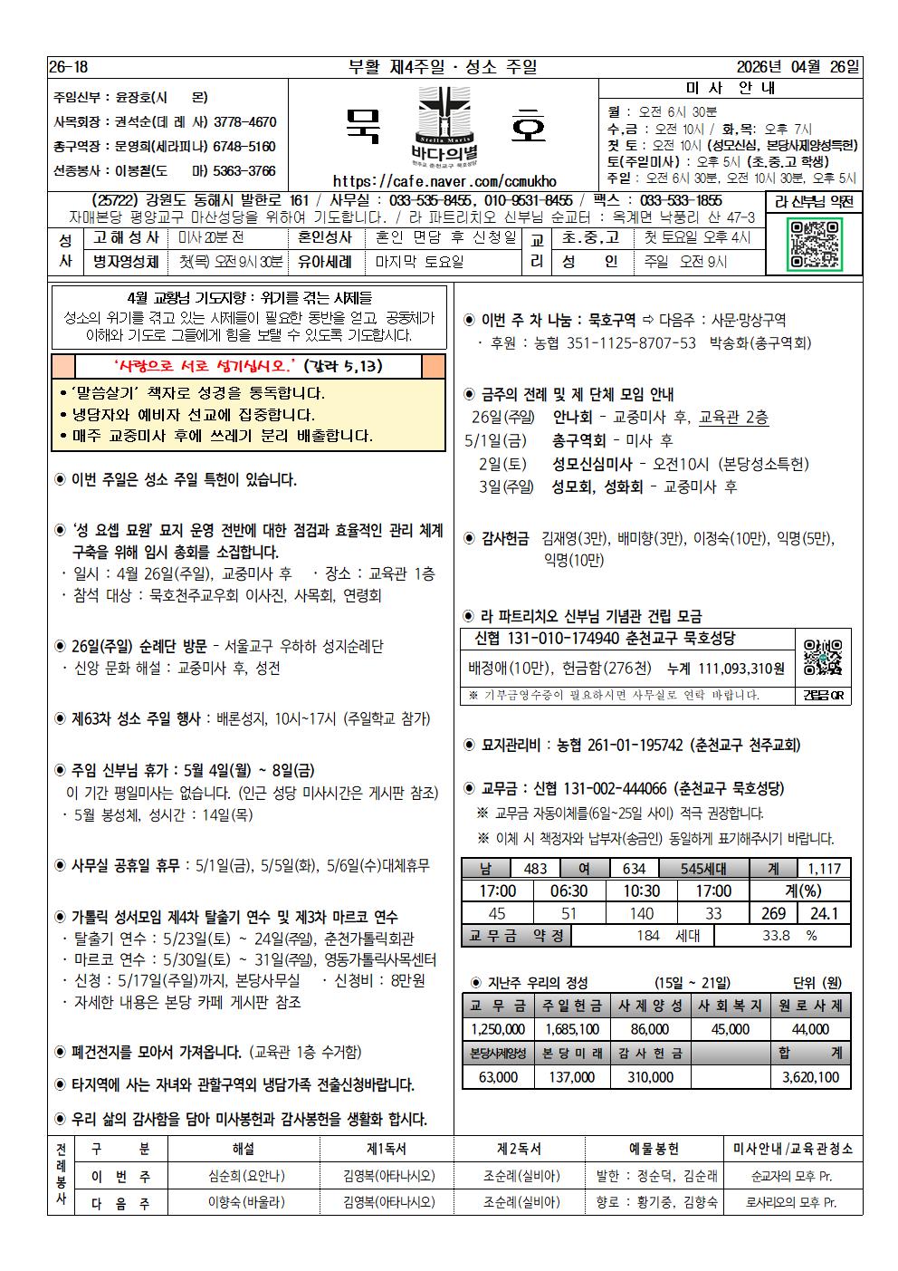 묵호 - 2026년 4월 26일, 부활 제4주일(성소 주일)