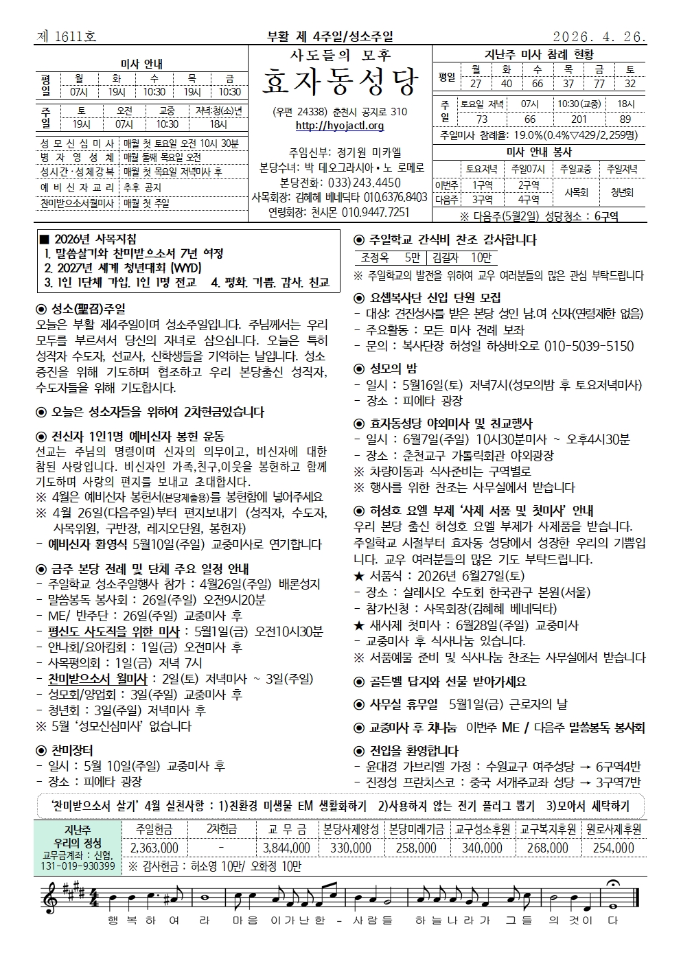 효자동 - 2026년 4월 26일 부활 제4주일(성소주일)