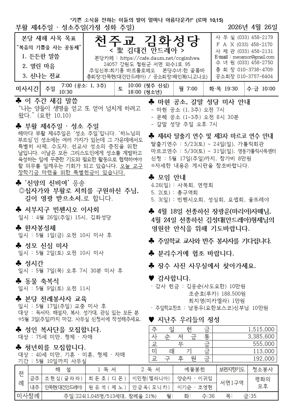 김화 - 2026년 4월 26일 부활 제4주일 · 성소주일