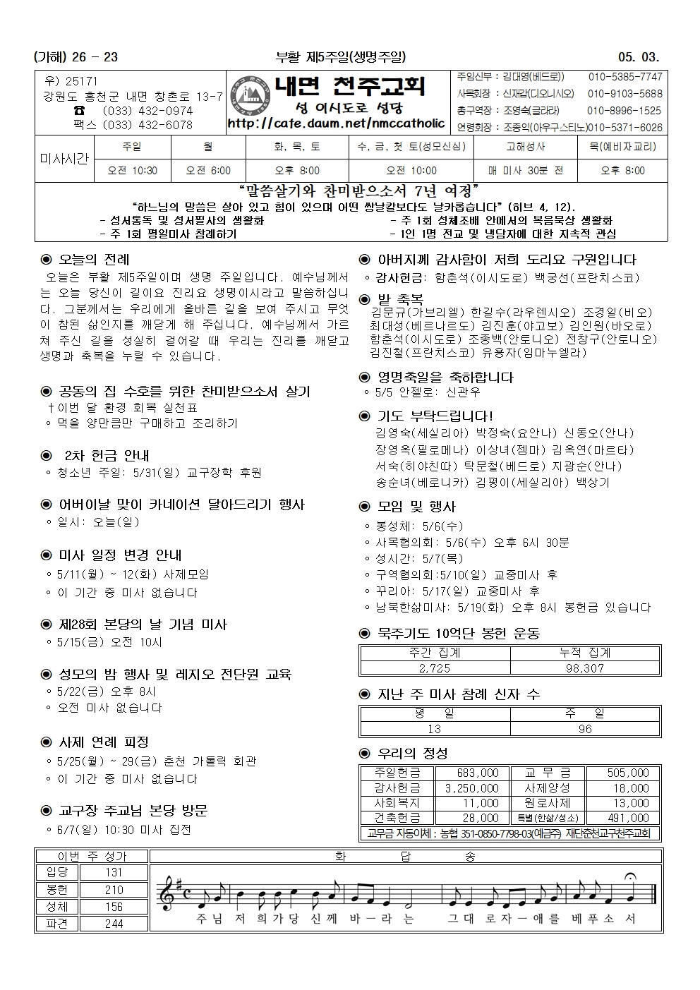 내면-2026년 5월 3일 부활 제5주일(생명주일)