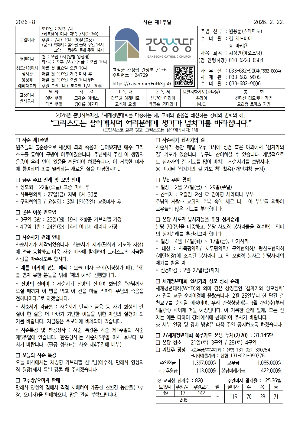 간성 - 2026년2월22일 사순제1주일