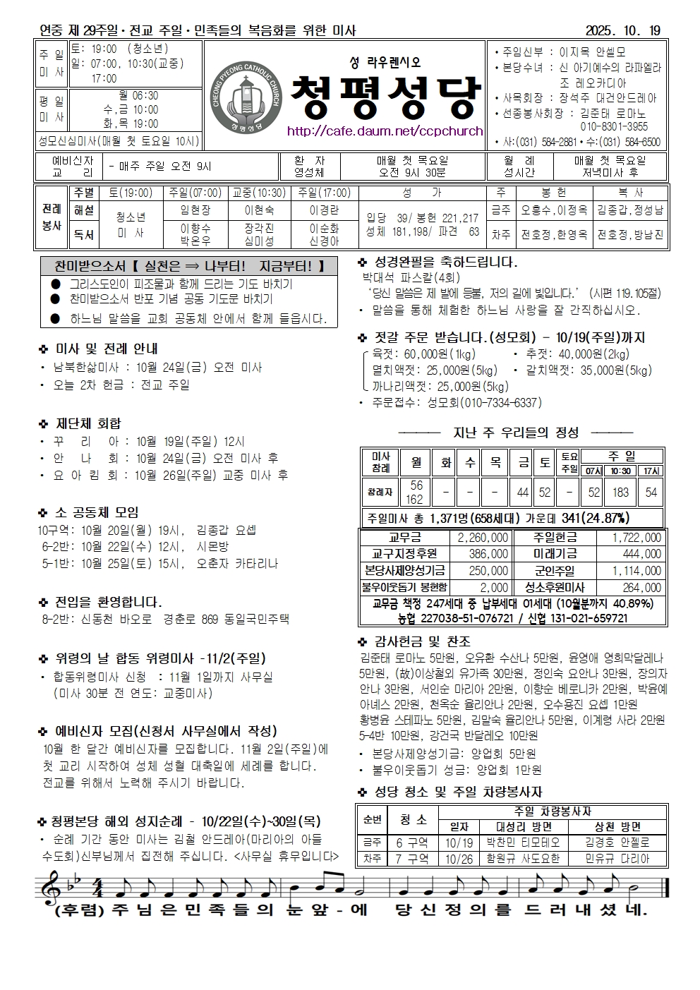 청평 - 2025년 10월 19일 연중 제 29주일ㆍ전교 주일ㆍ민족들의 복음화를 위한 미사