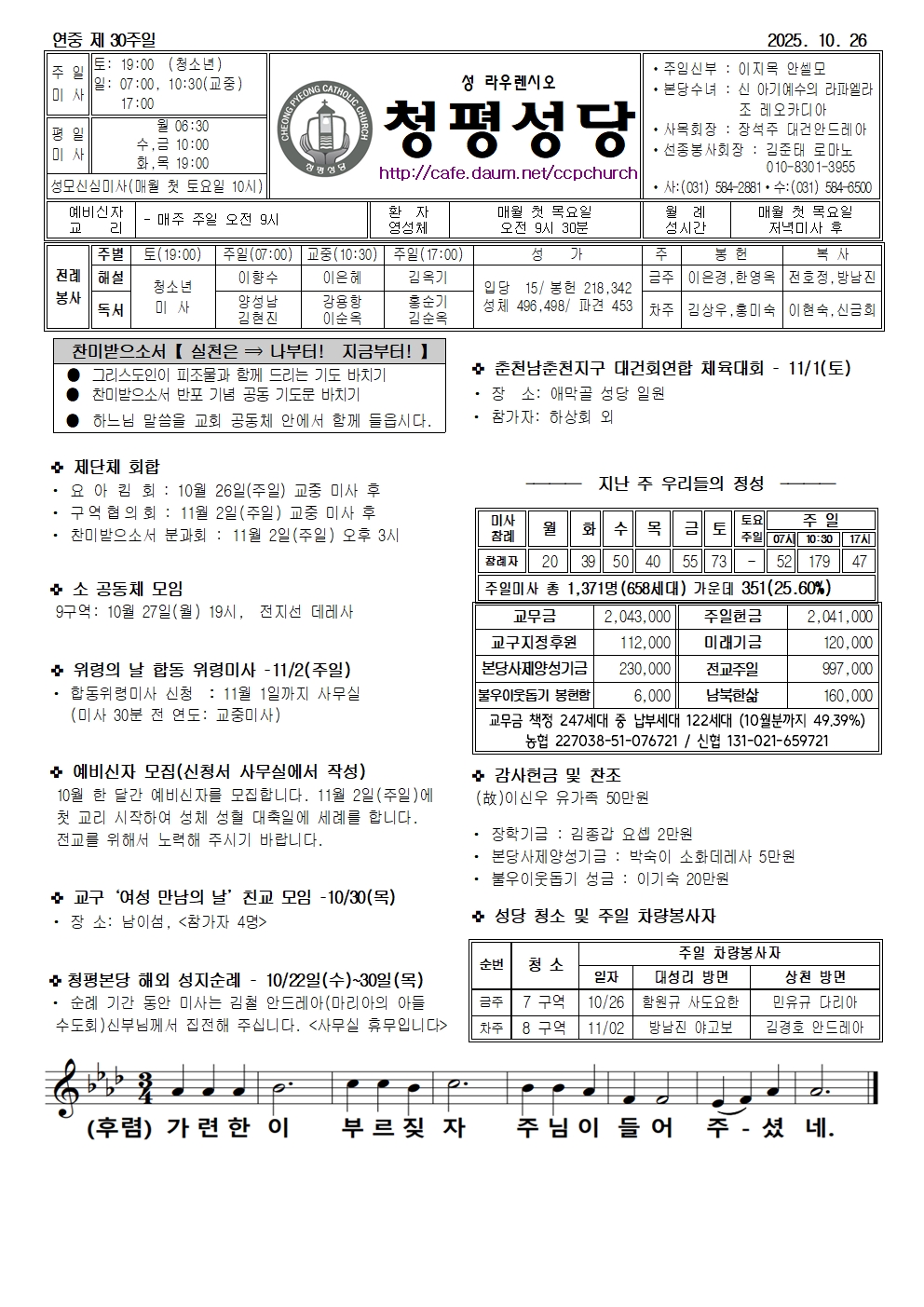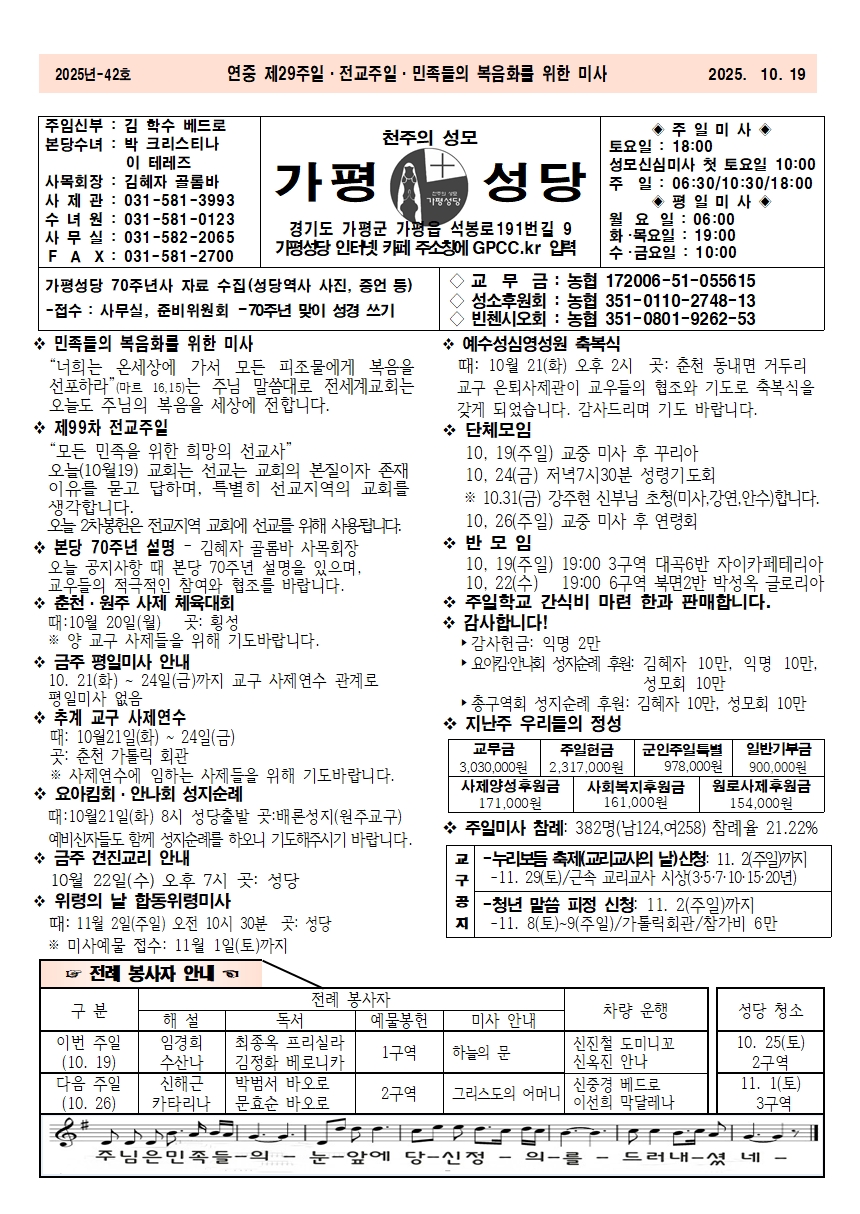 가평 - 2025. 10. 19 연중 제 29주일ㆍ전교 주일ㆍ민족들의 복음화를 위한 미사