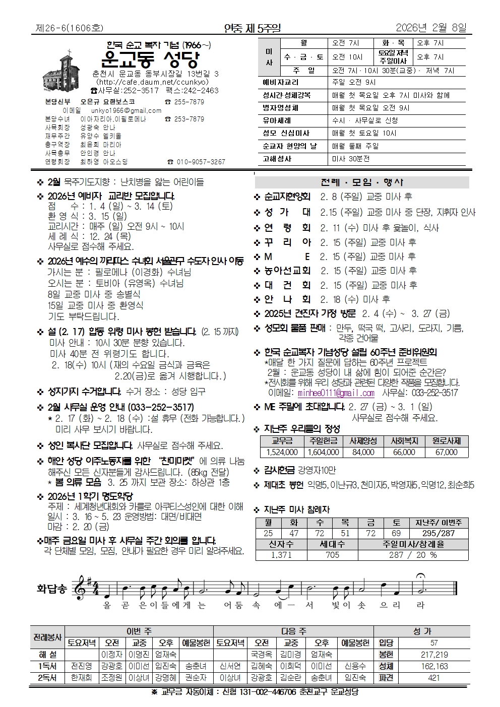 운교동 2026년 2월 8일 연중 제5주일