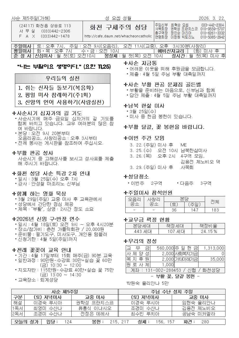 화천 - 2026년 3월 22일 사순 제5주일