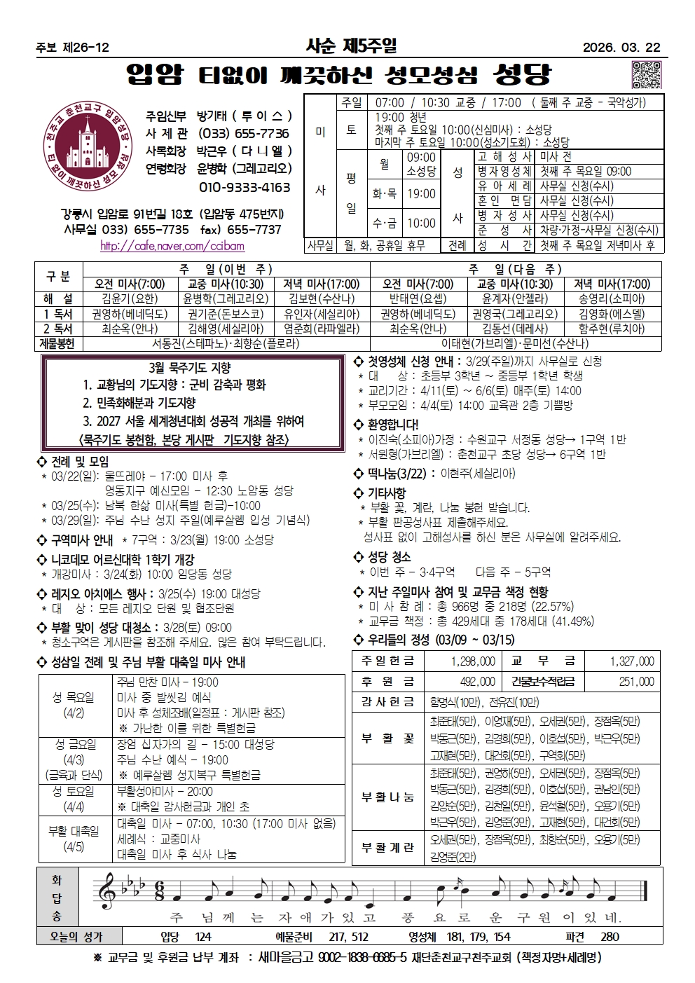 샘밭 2026년 3월 22일 사순 제5주일