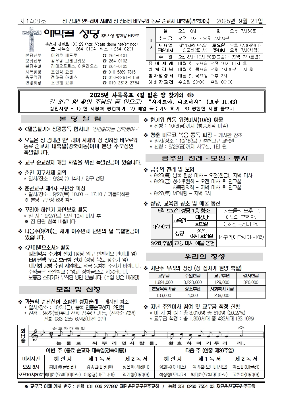 김화 - 2025년 9월 21일 성 김대건 안드레아 사제와 성 정하상 바오로와 동료 순교자들 대축일