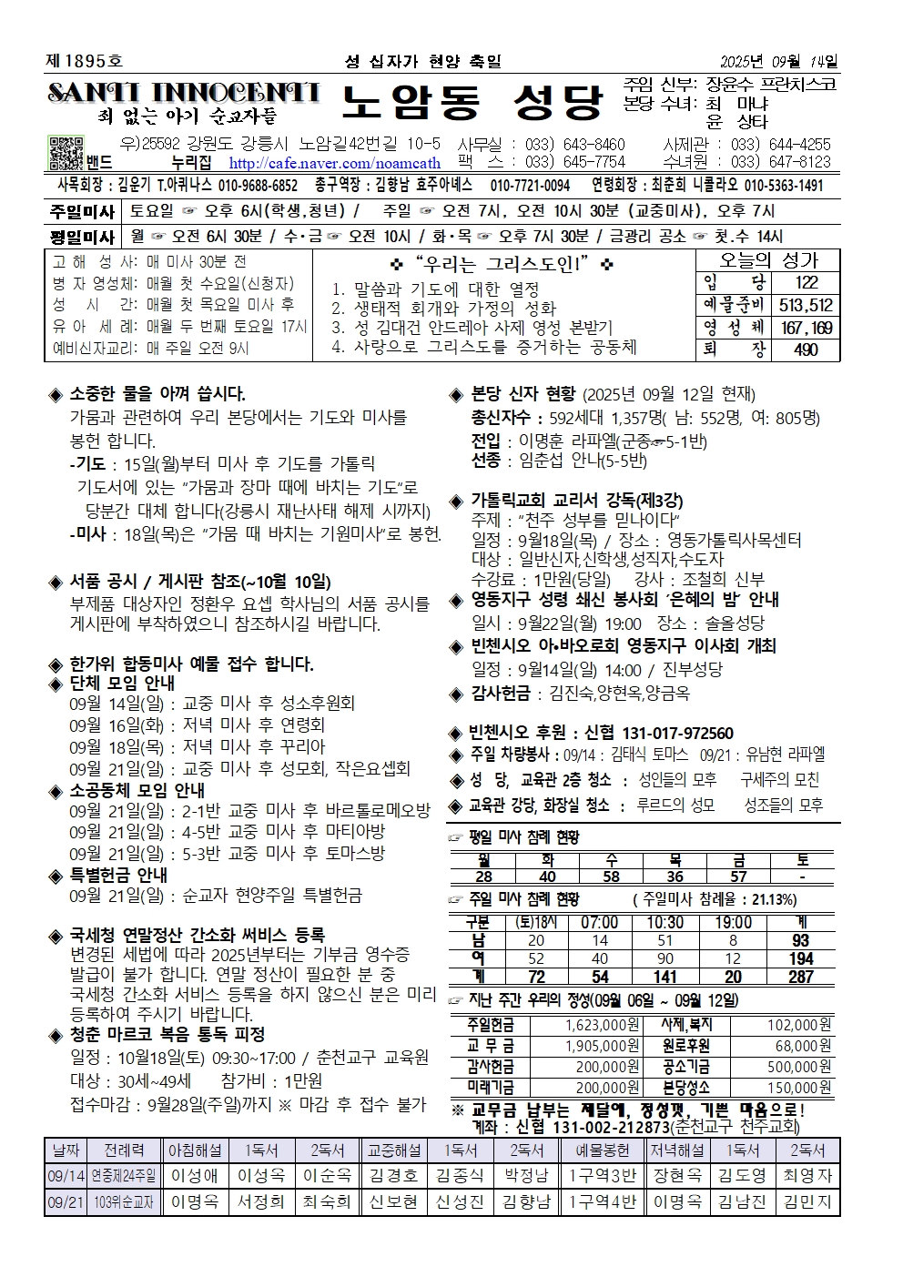 현리 - 2025년 9월 14일, 성 십자가 현양 주일