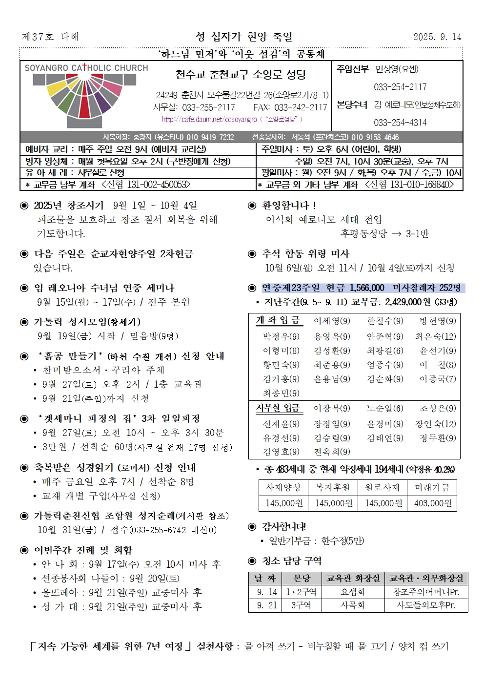 소양로 - 2025년 9월 14일 성 십자가 현양 축일