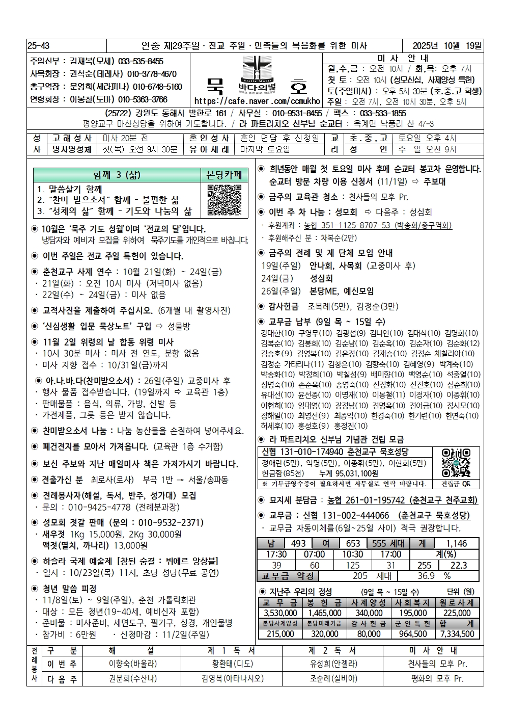 묵호 - 2025년 10월 19일, 연중 제29주일(전교 주일)