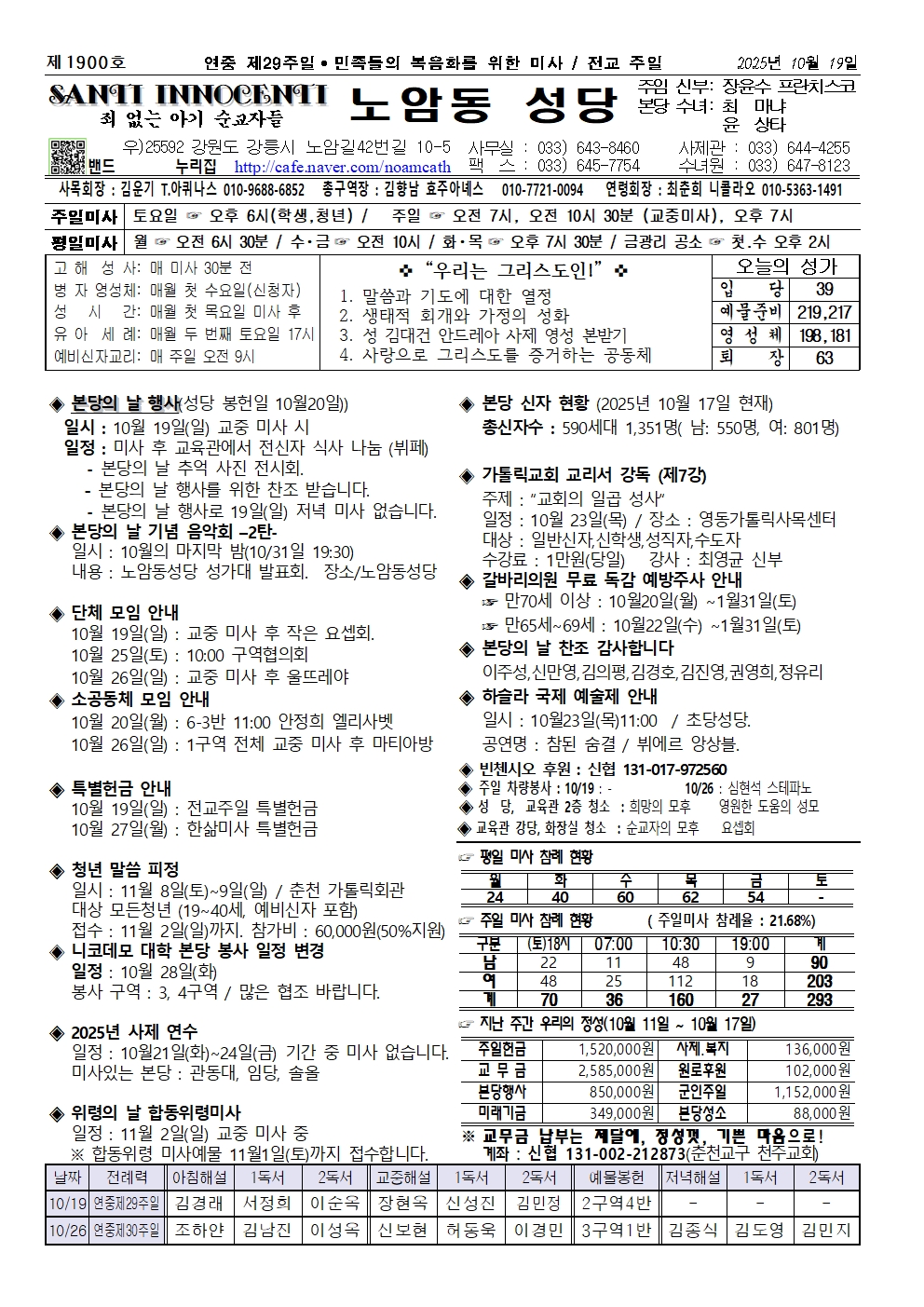노암동-2025년10월19일 연중제29주일 /전교주일 /민족들의 복음화를 위한 미사