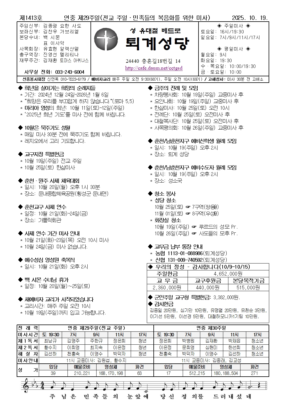 퇴계-2025년 10월 19일 연중 제29주일(전교 주일·민족들의 복음화를 위한 미사)