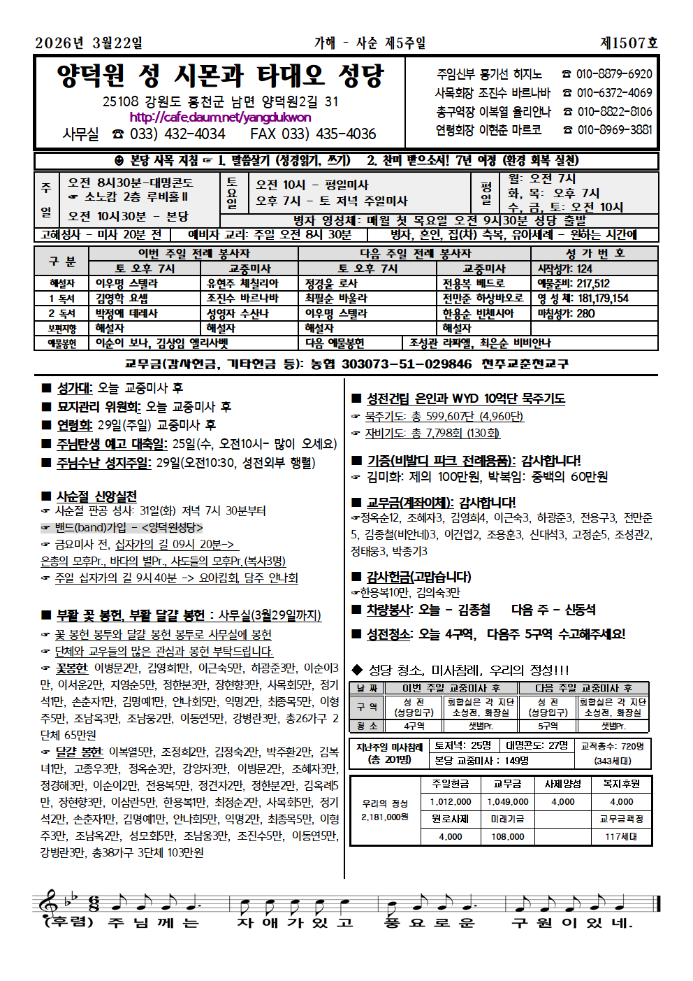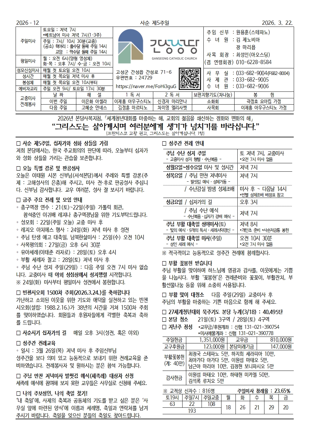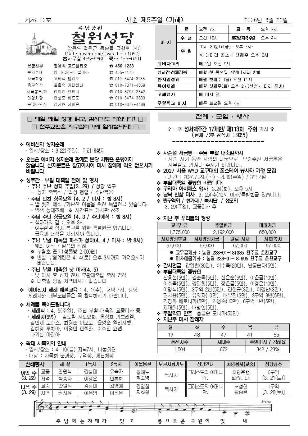 철원 - 2026년 3월 22일 사순 제5주일(가해)