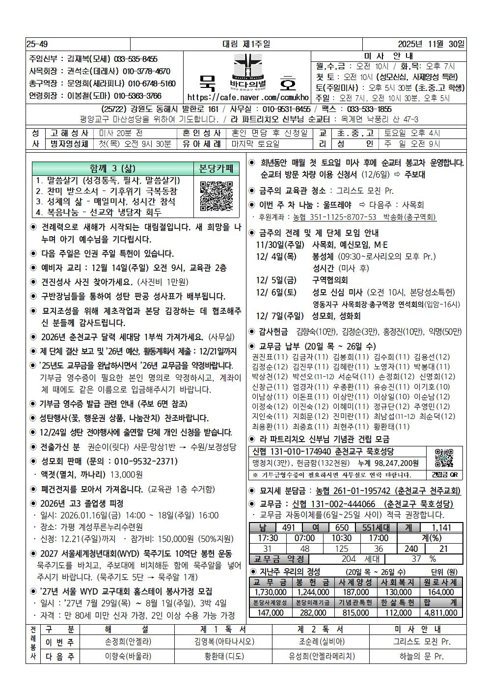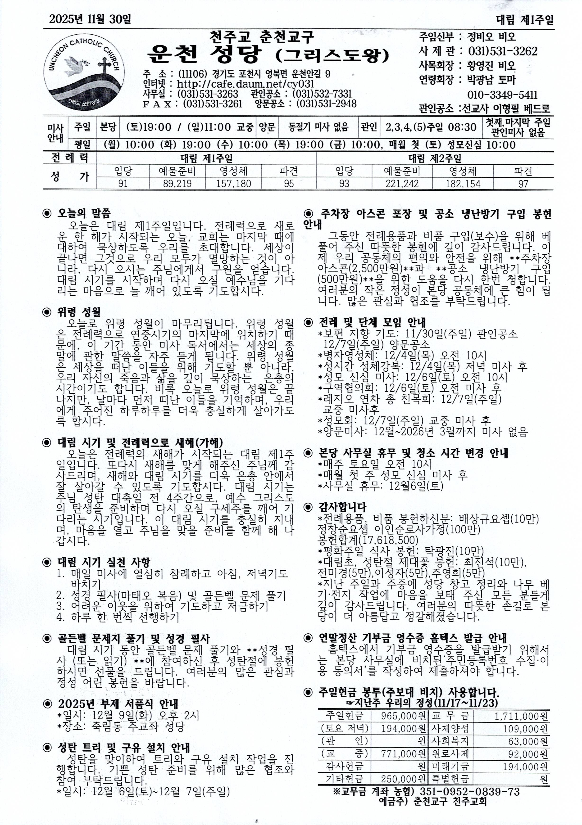 묵호 - 2025년 11월 30일, 대림 제1주일