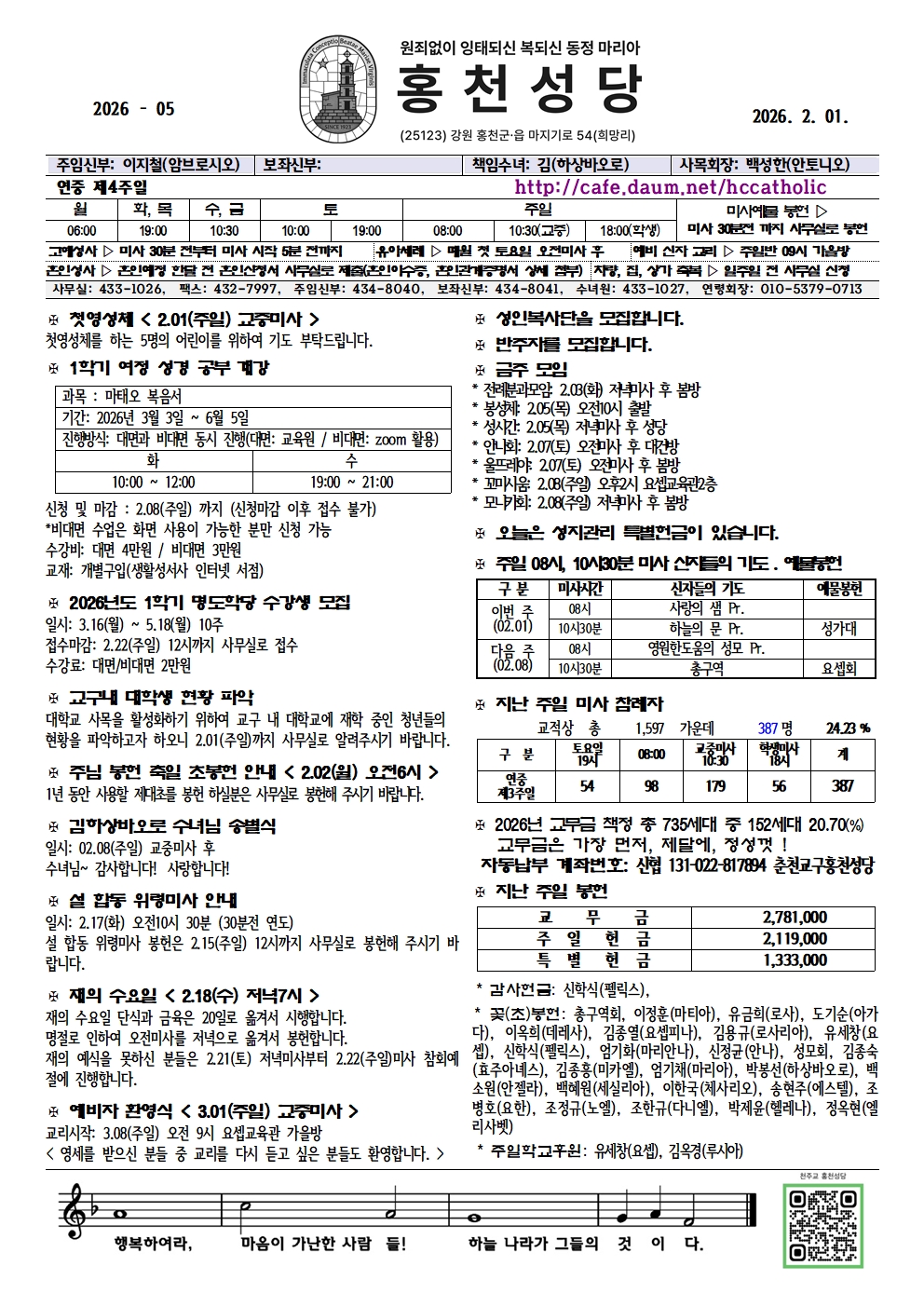 청호동 - 2026년 2월 1일 연중 제 4 주일
