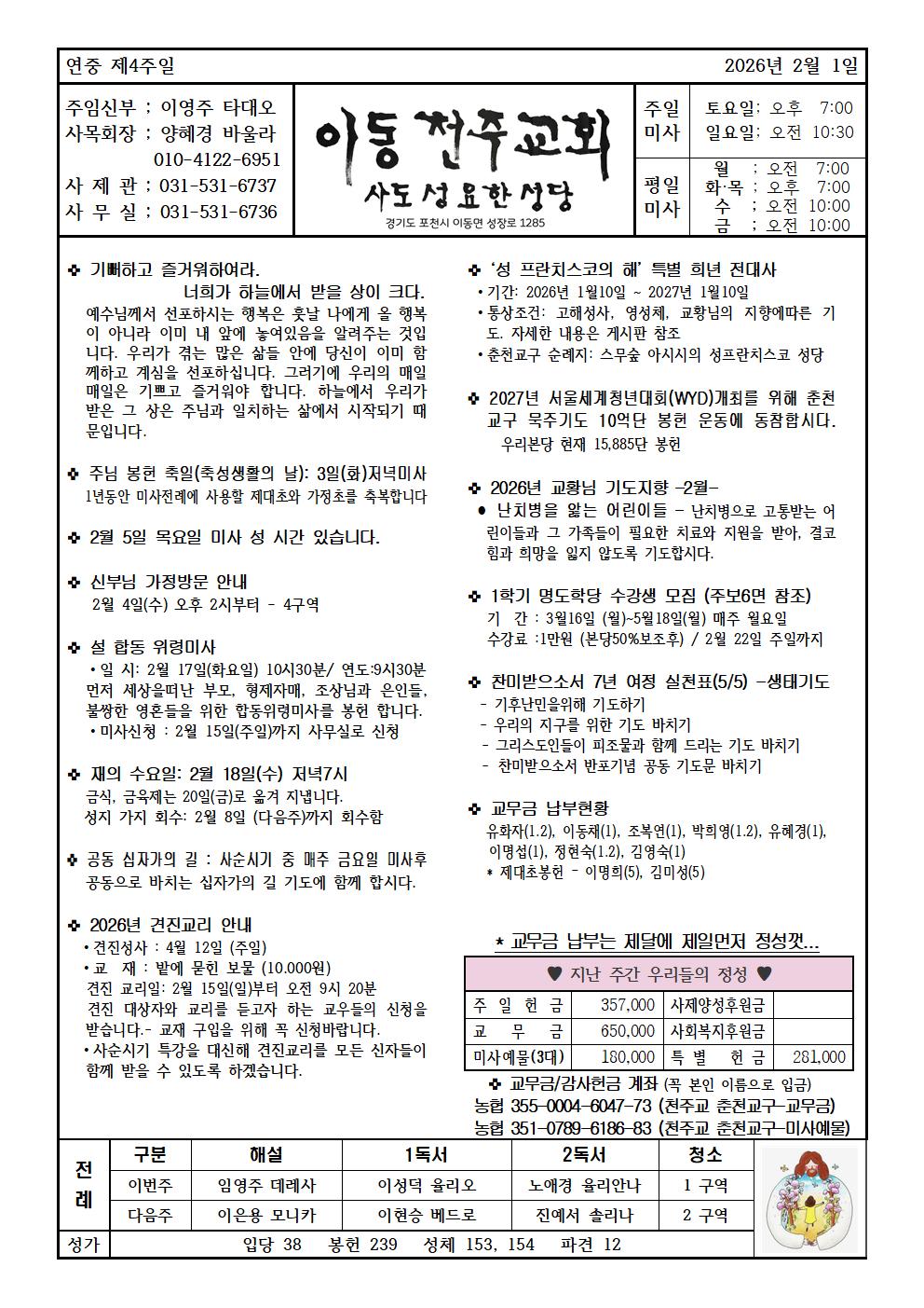 동명동 - 2026년 2월 1일 연중 제 4주일