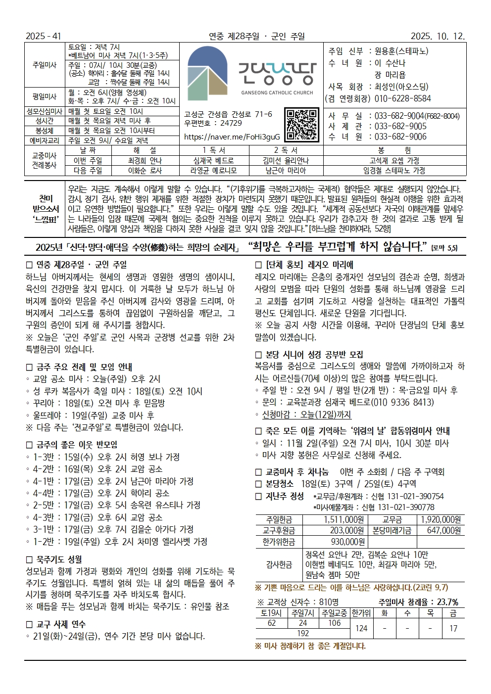 소양로 - 2025년 10월 12일 연중 제 28주일 - 군인주일