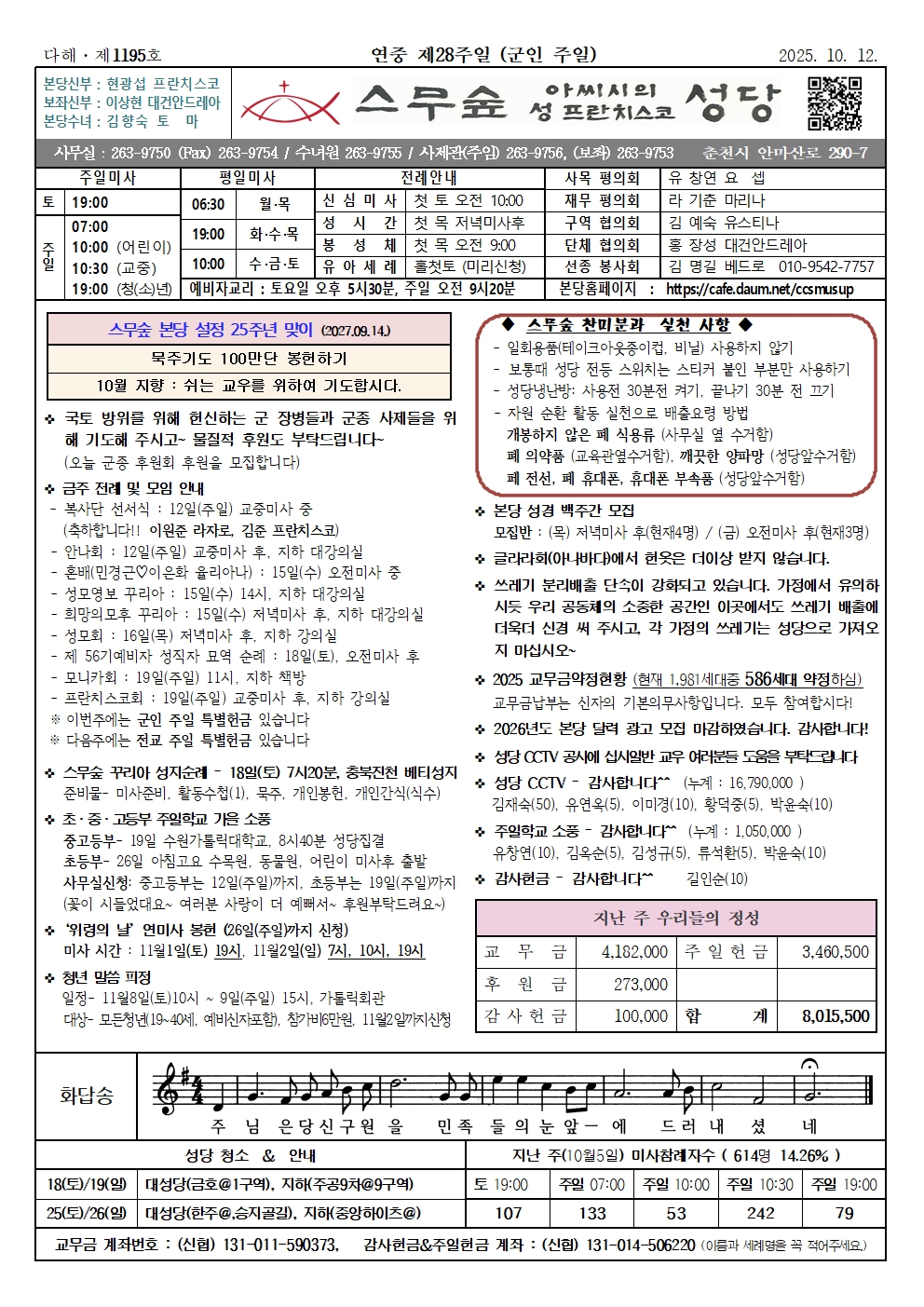 스무숲 - 2025년10월12일 연중 제28주일(군인 주일)
