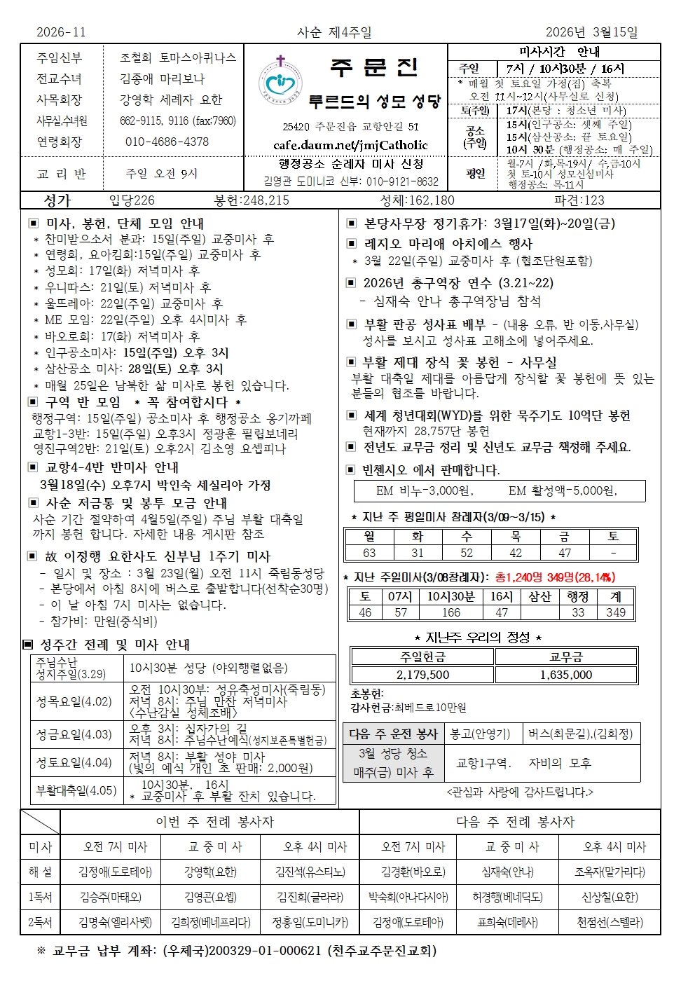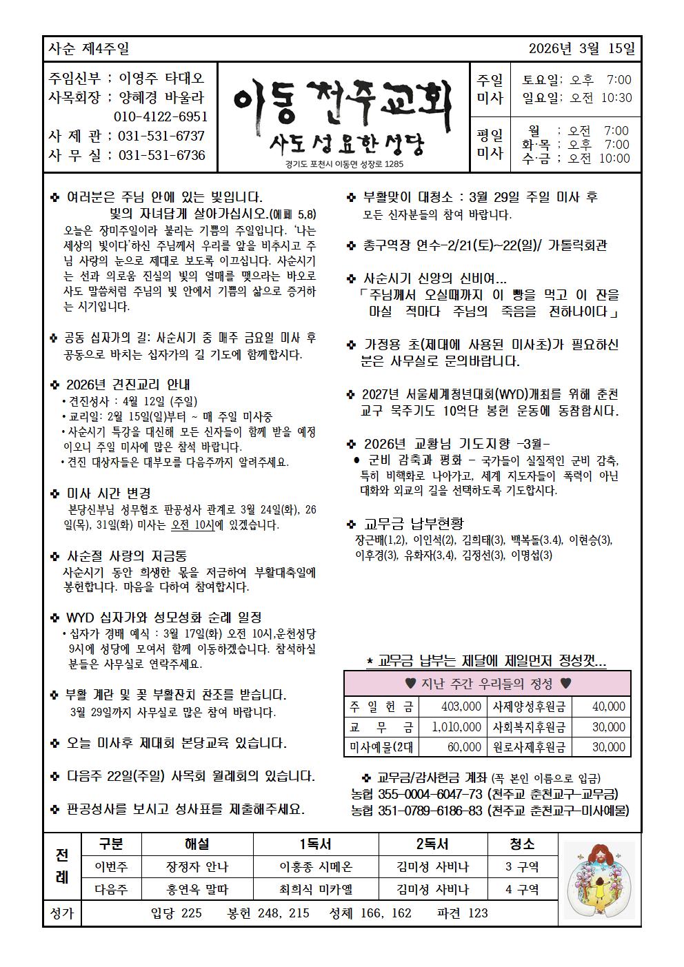 동명동 - 2026년 3월 15일 사순 제 4주일