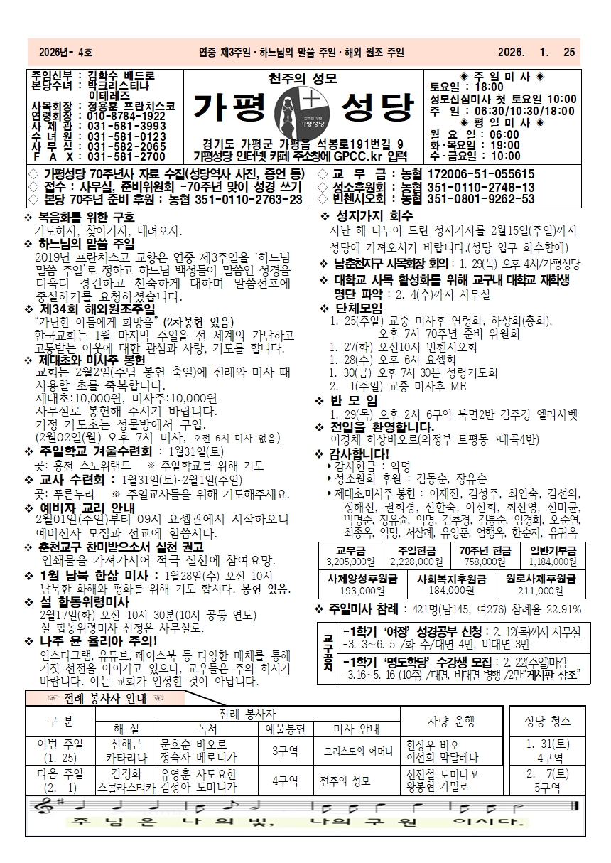 가평-2026.1.25 연중 제3주일 ·해외원조주일 · 하느님의 말씀 주일