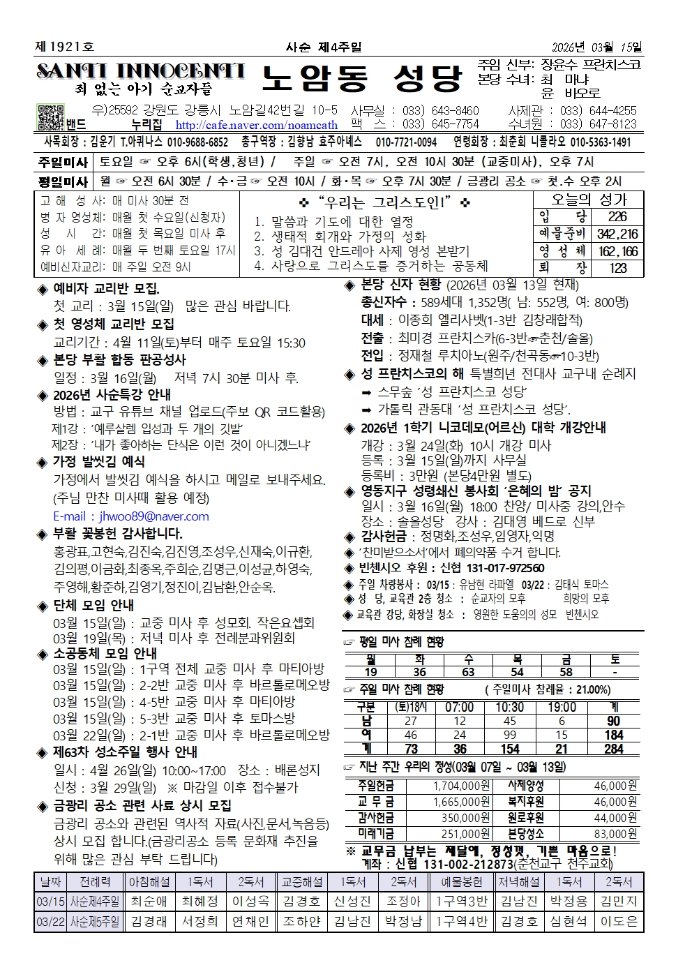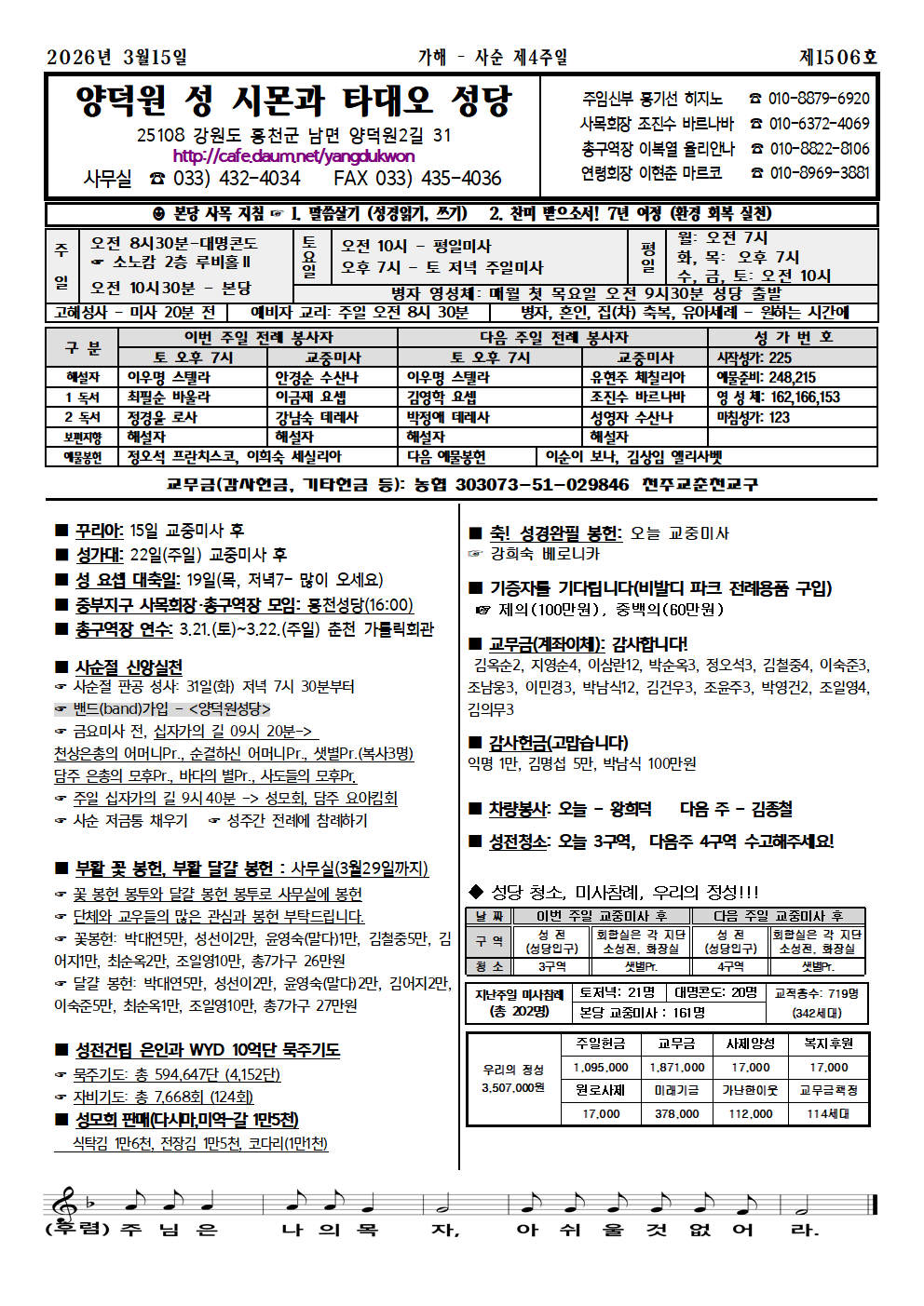 현리 - 2026년 3월 15일, 사순 제 4주일