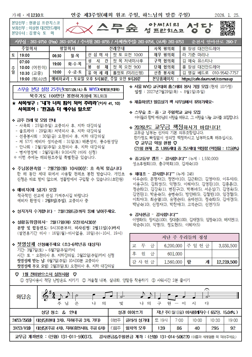 스무숲 - 2026년1월25일 연중 제3주일(해외원조주일, 하느님의말씀주일)