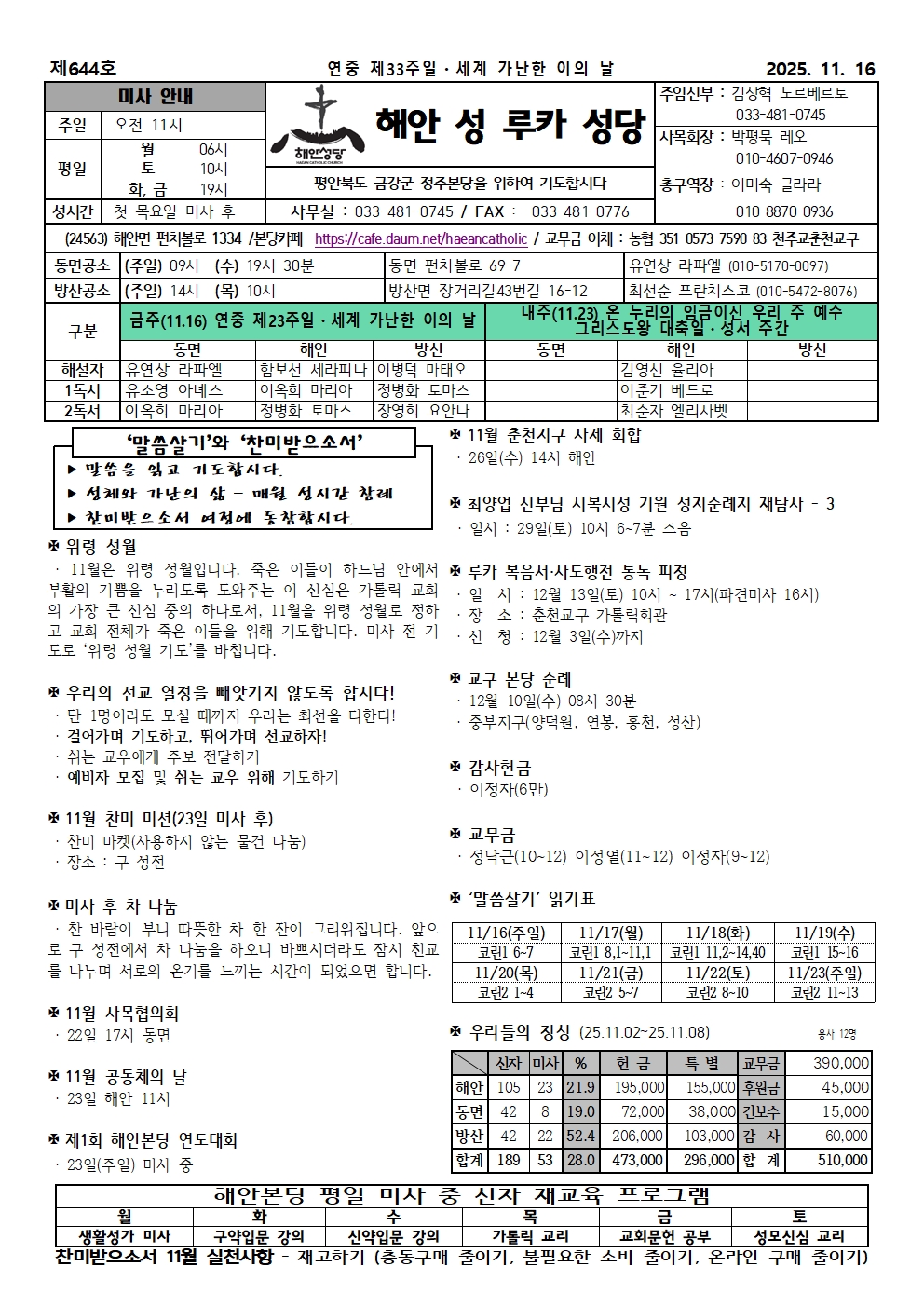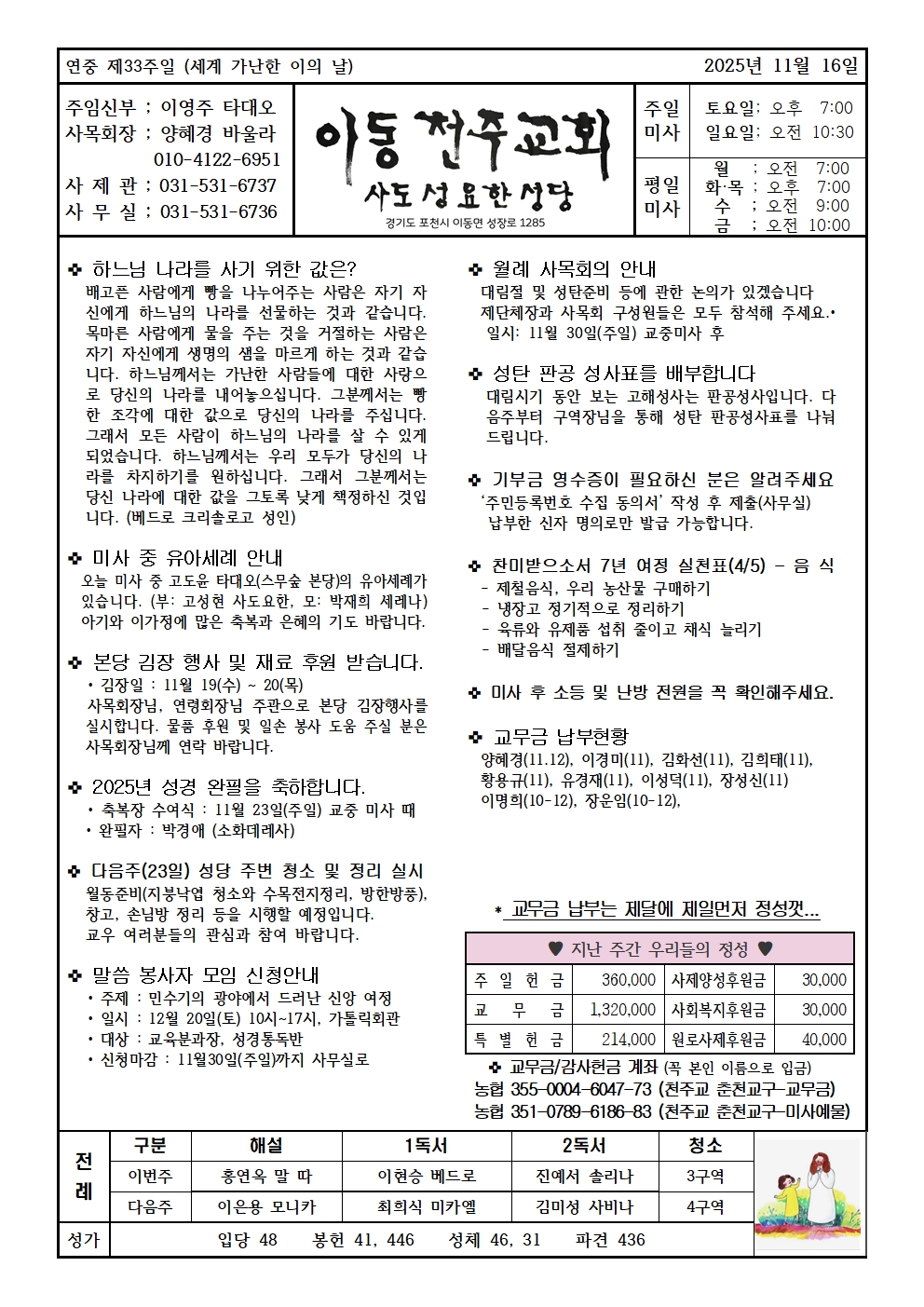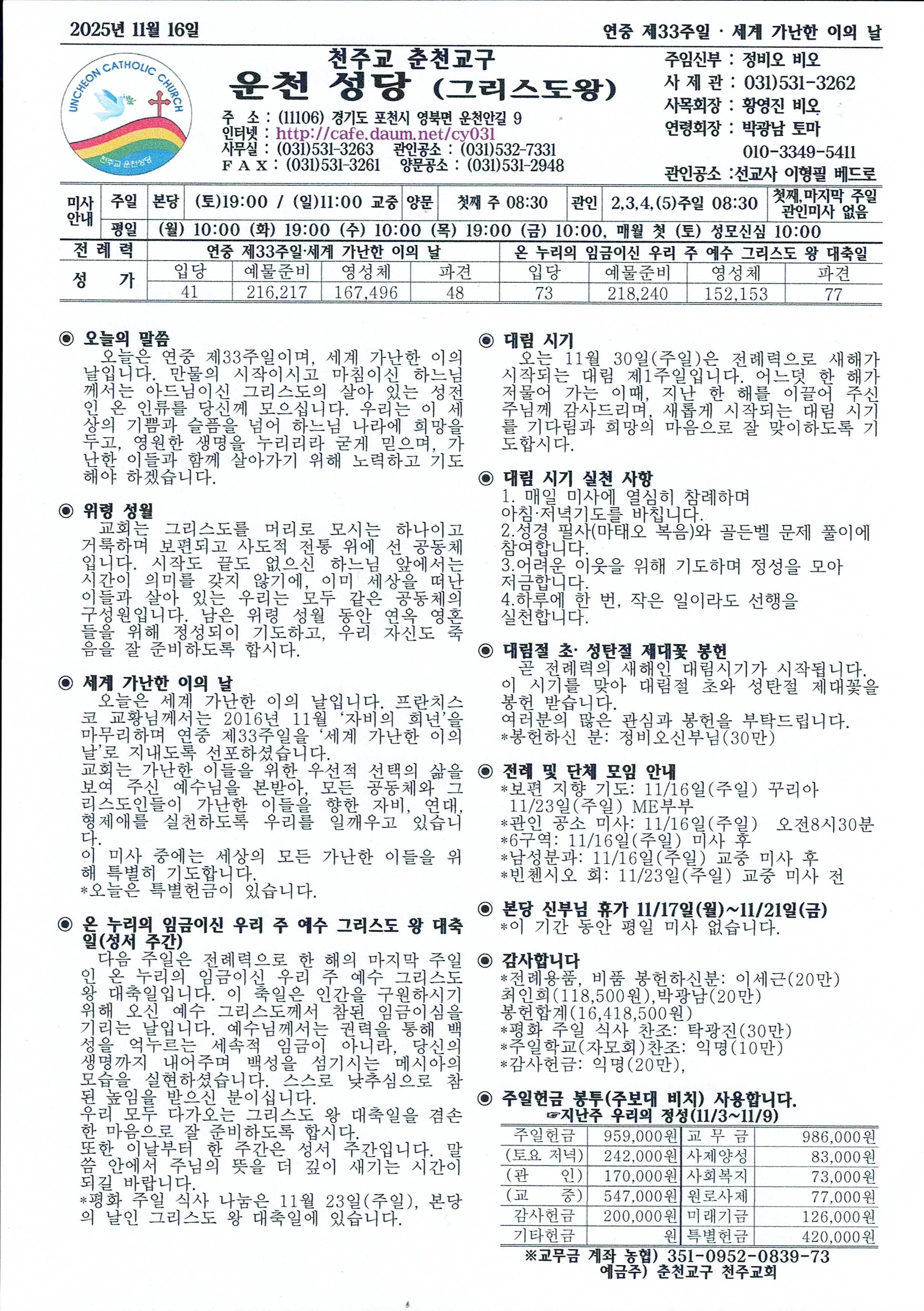 운천-2025년 11월 16일 연중 제33주일(세계 가난한 이의 날)