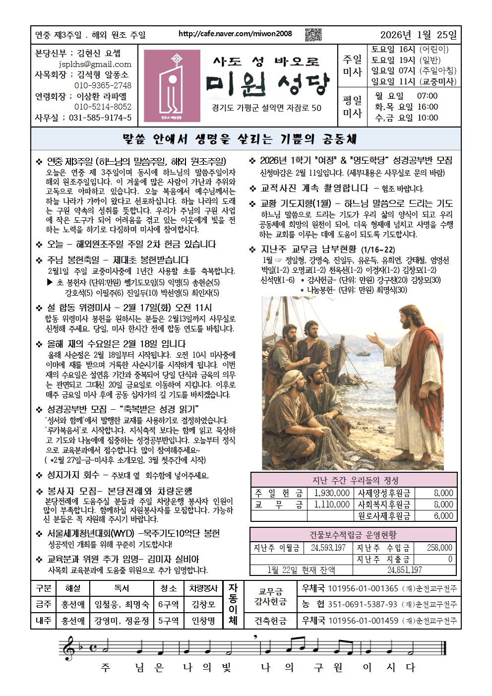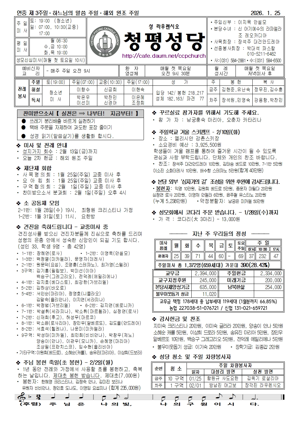 물치-2026년 1월 25일 연중제3주일(하느님의 말씀주일/해외원조주일)