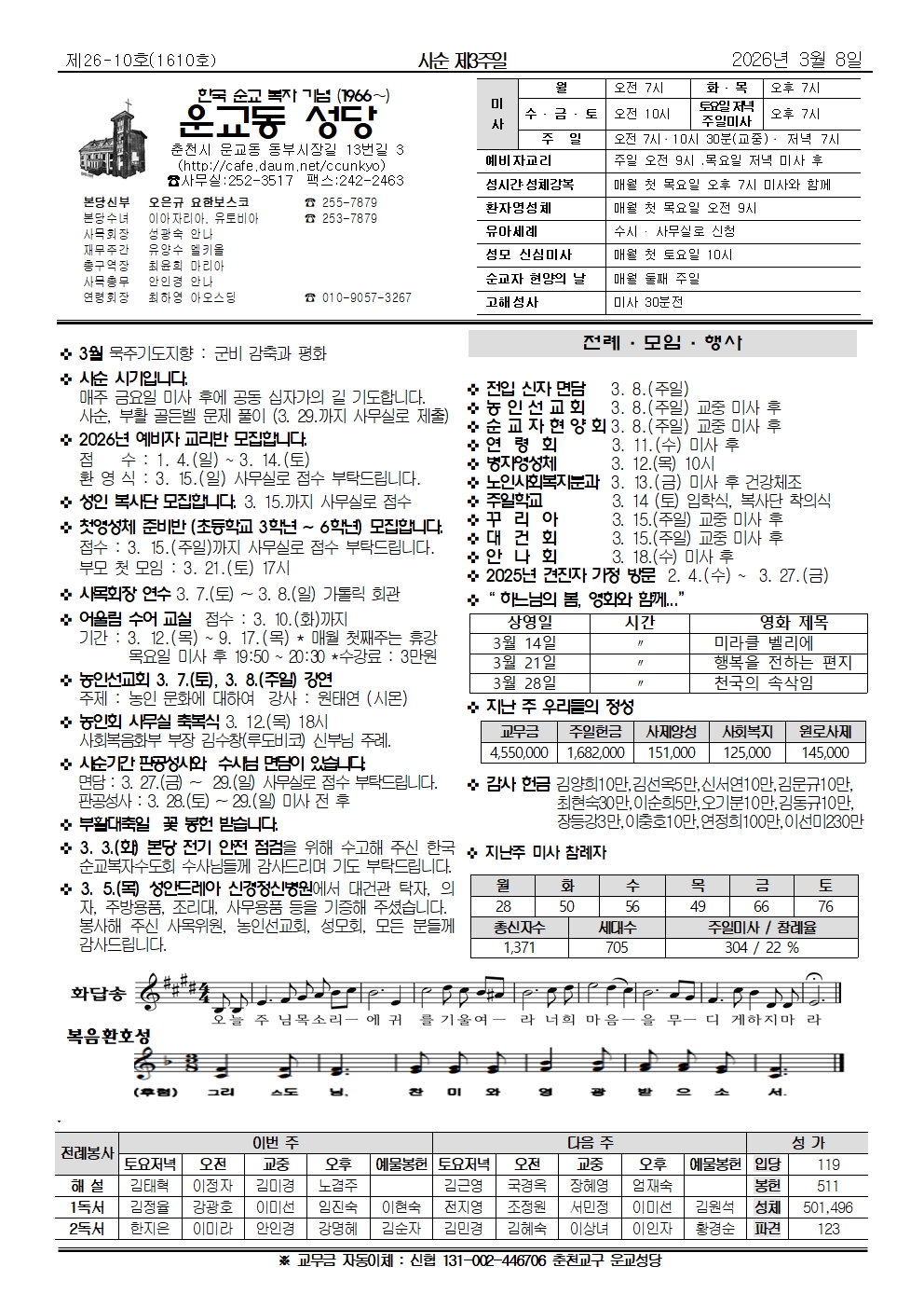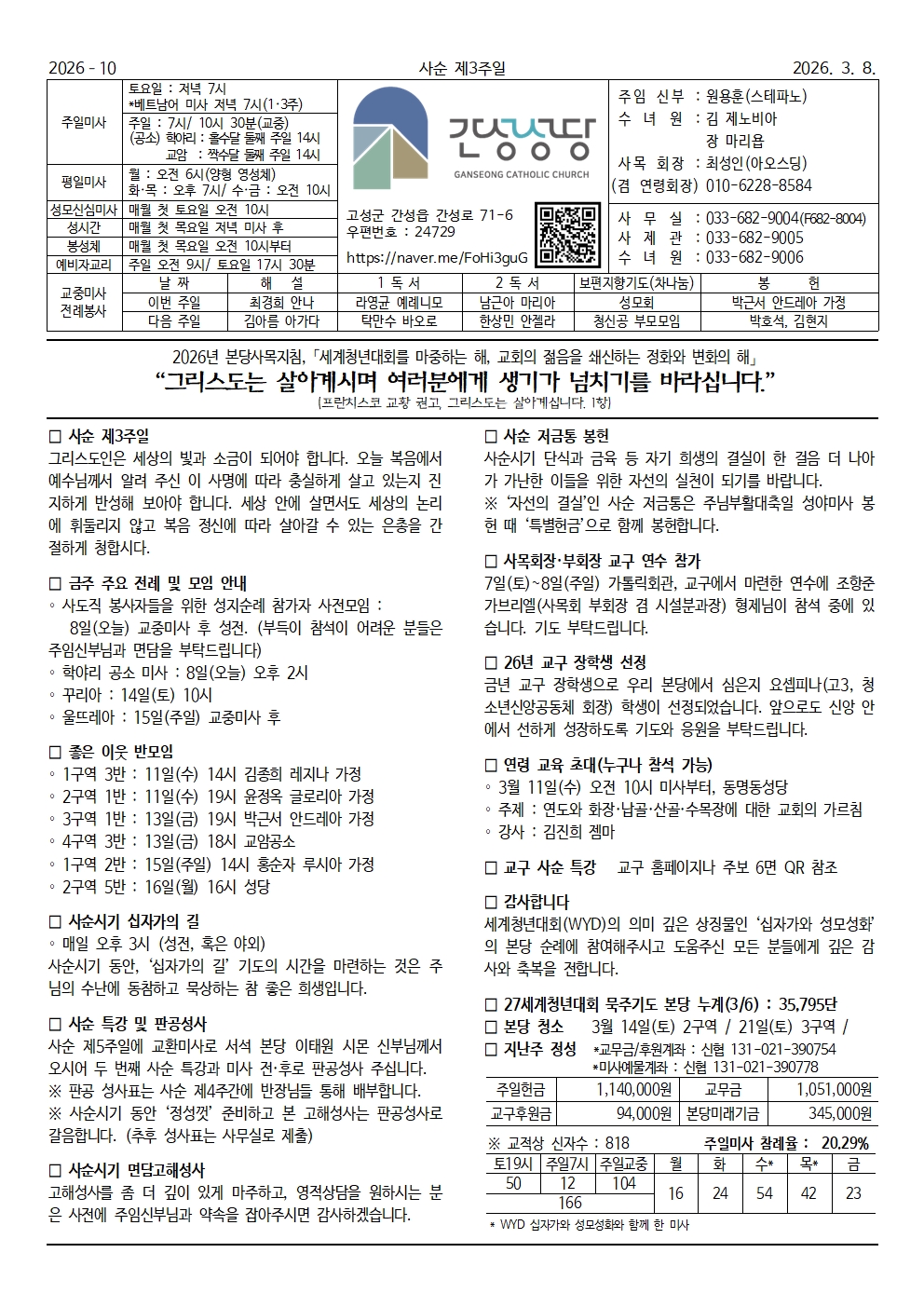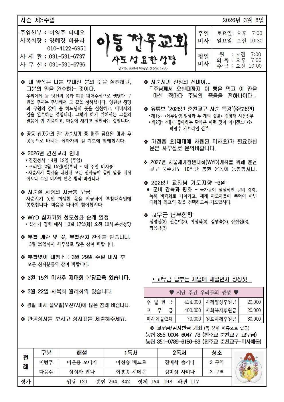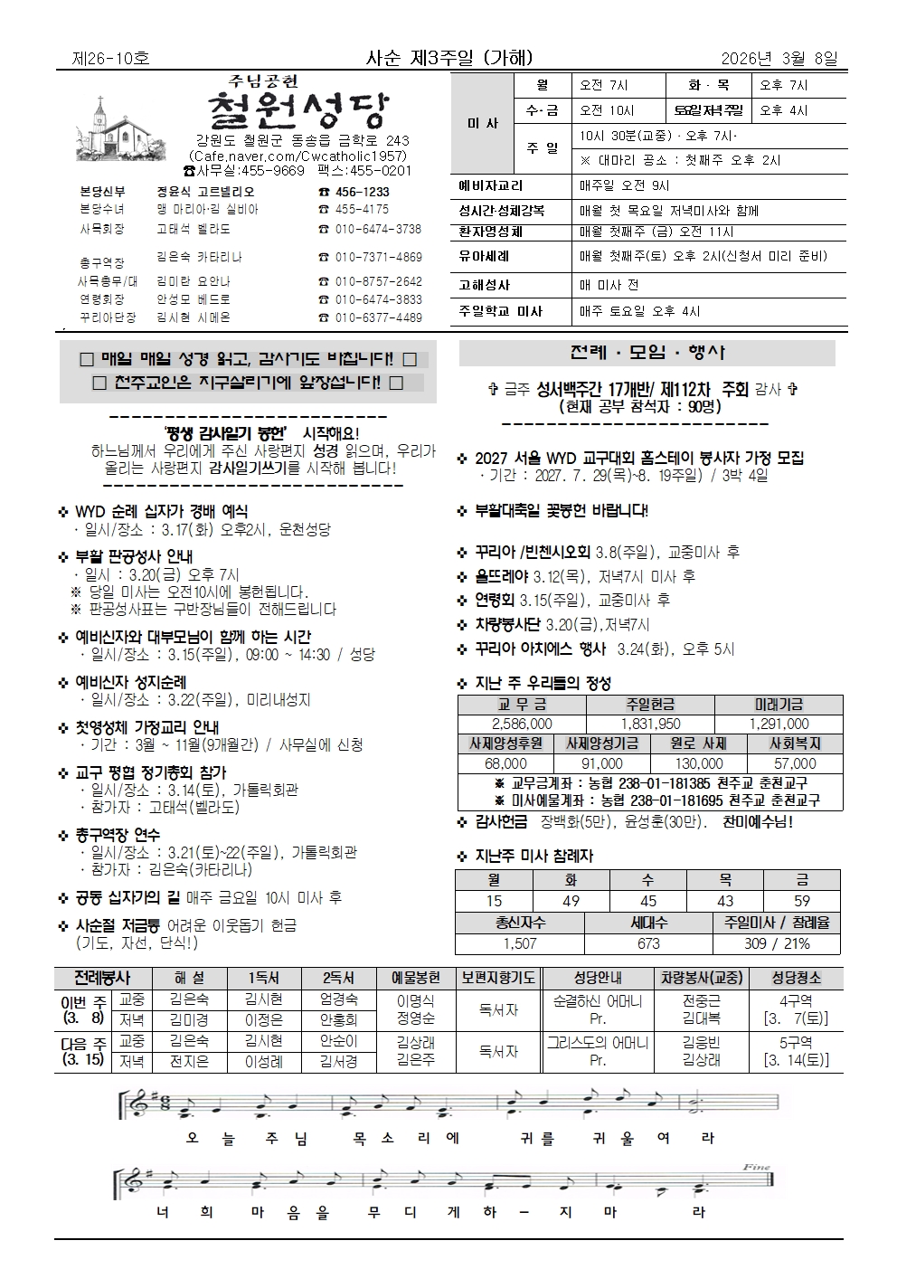 철원 - 2026년 3월 8일 사순 제3주일(가해)