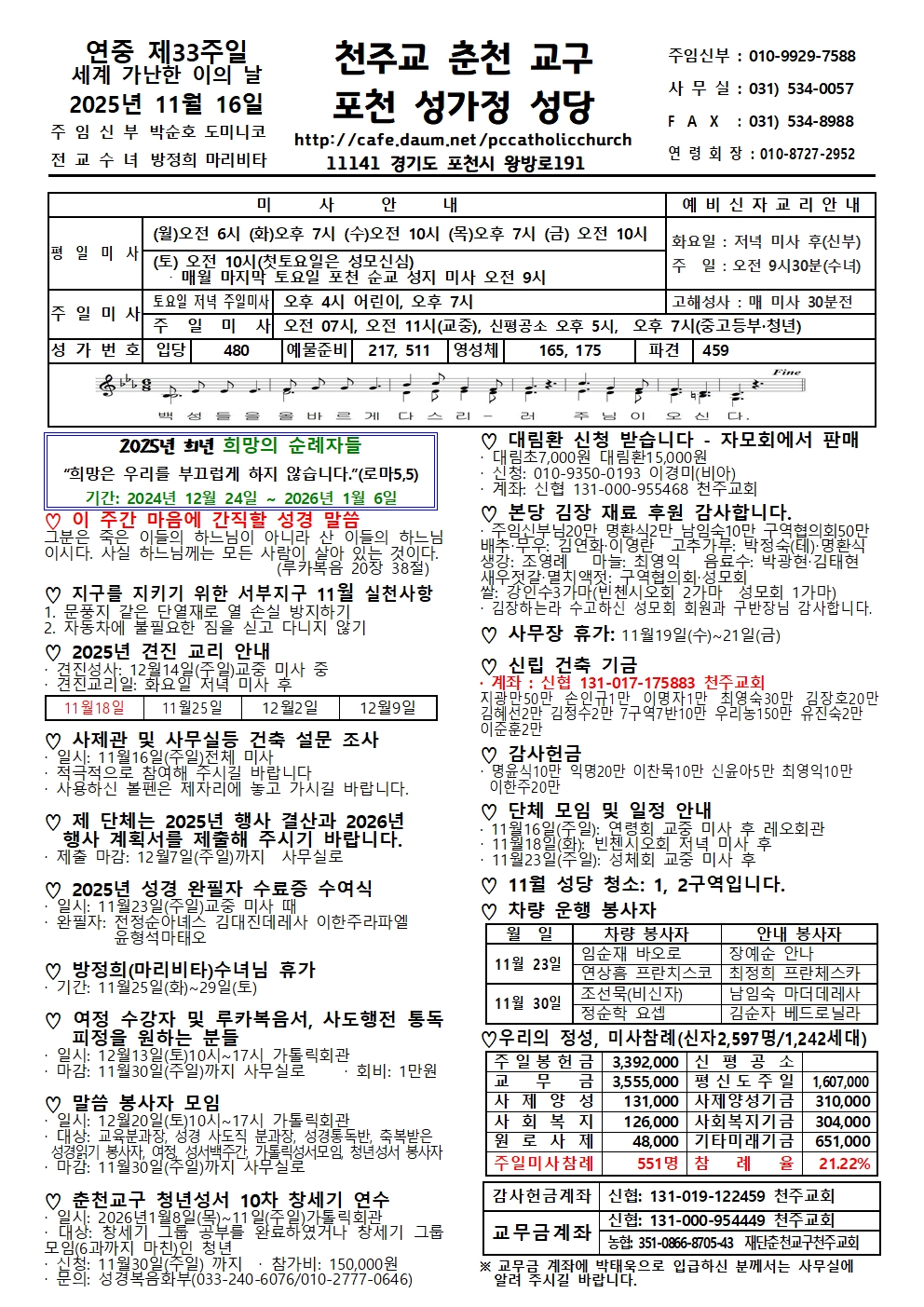 포천 -2025년11월16일 연중제33주일/세계 가난한 이의 날