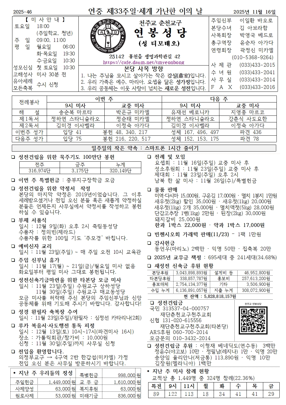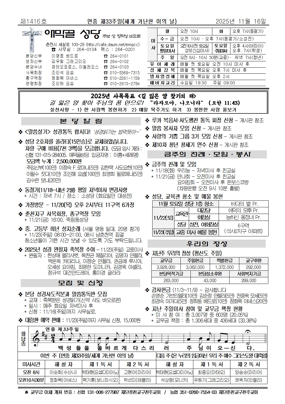 연봉 - 2025년 11월 16일 연중 제33주일·세계 가난한 이의 날
