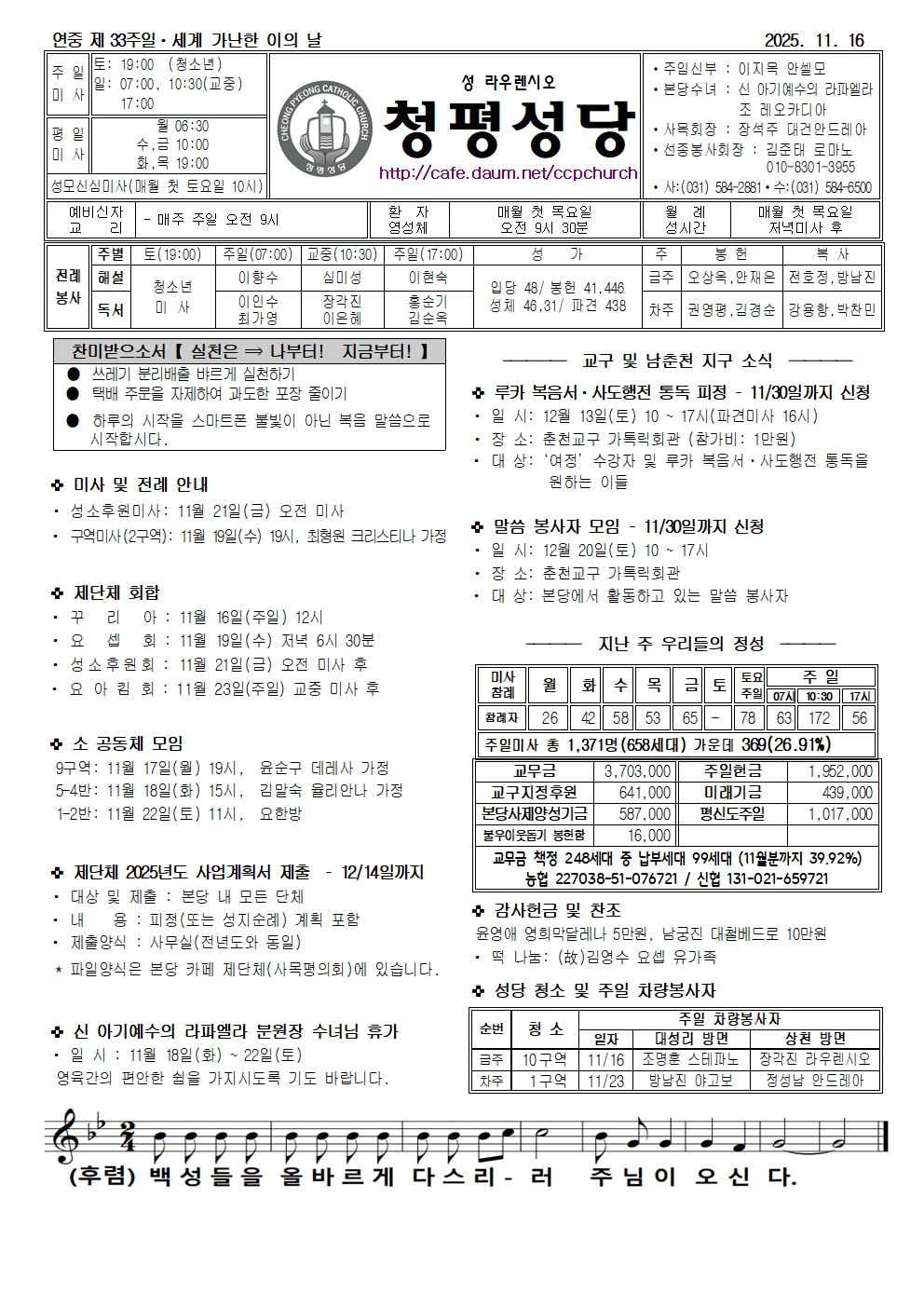 청평 - 2025년 11월 16일 연중 제 33주일ㆍ세계 가난한 이의 날