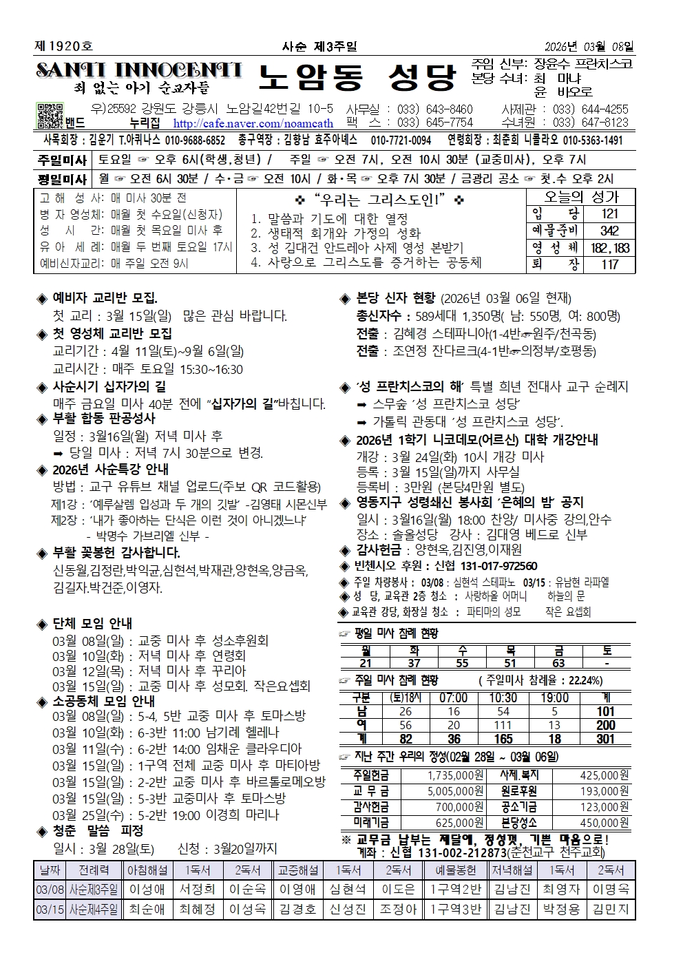 현리 - 2026년 3월 8일, 사순 제 3주일