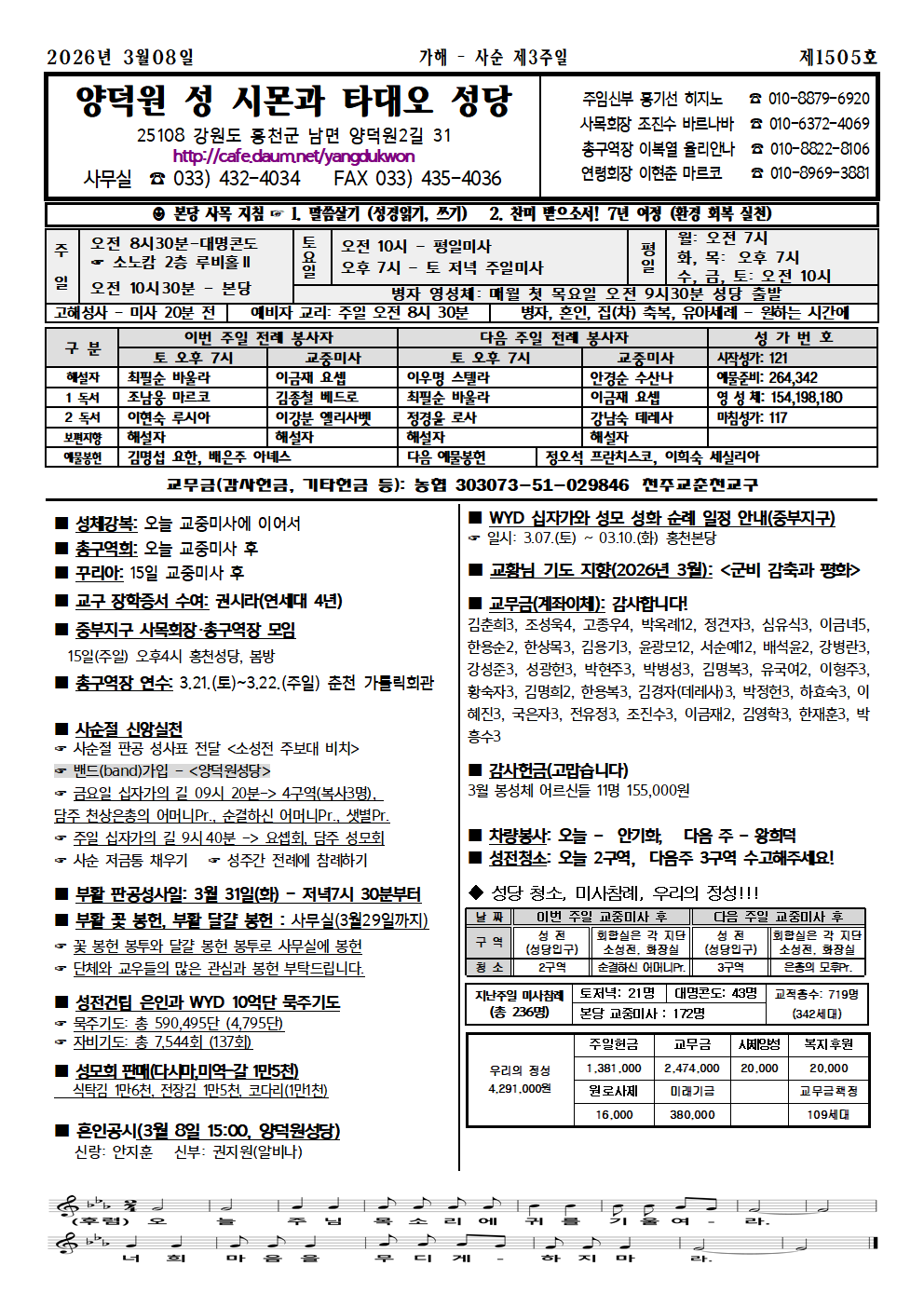 양덕원 - 2026년 3월 8일 사순 제3주일