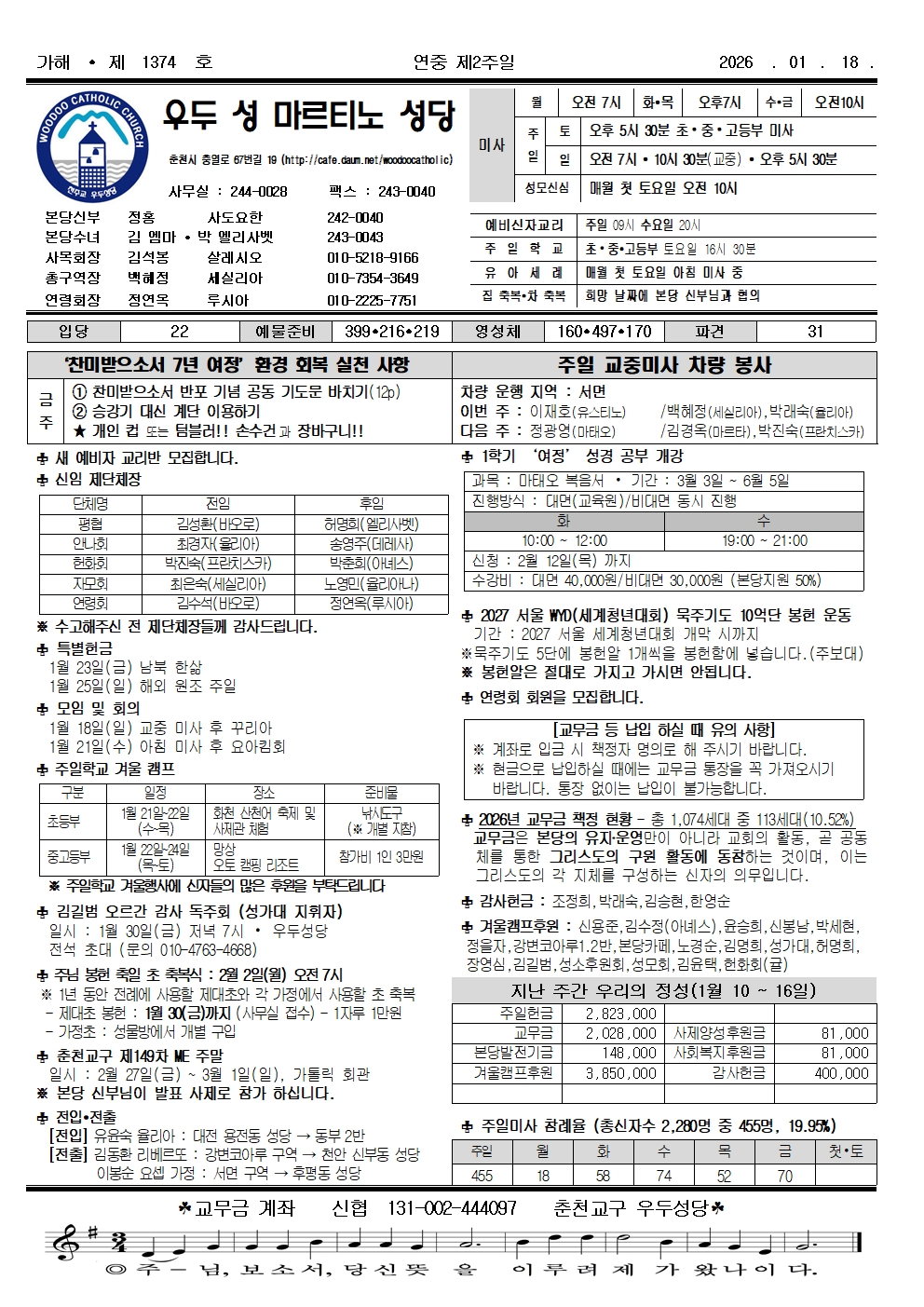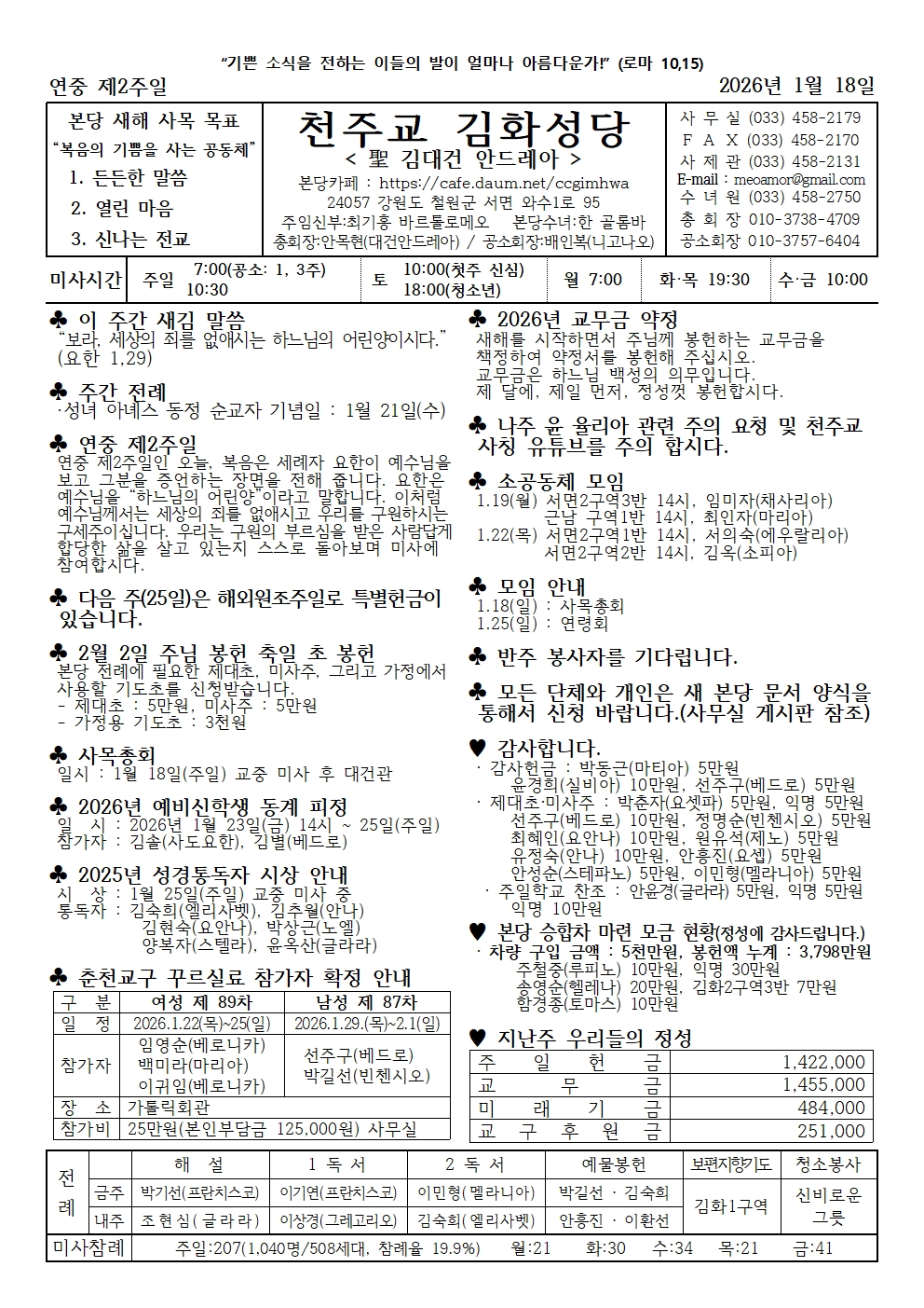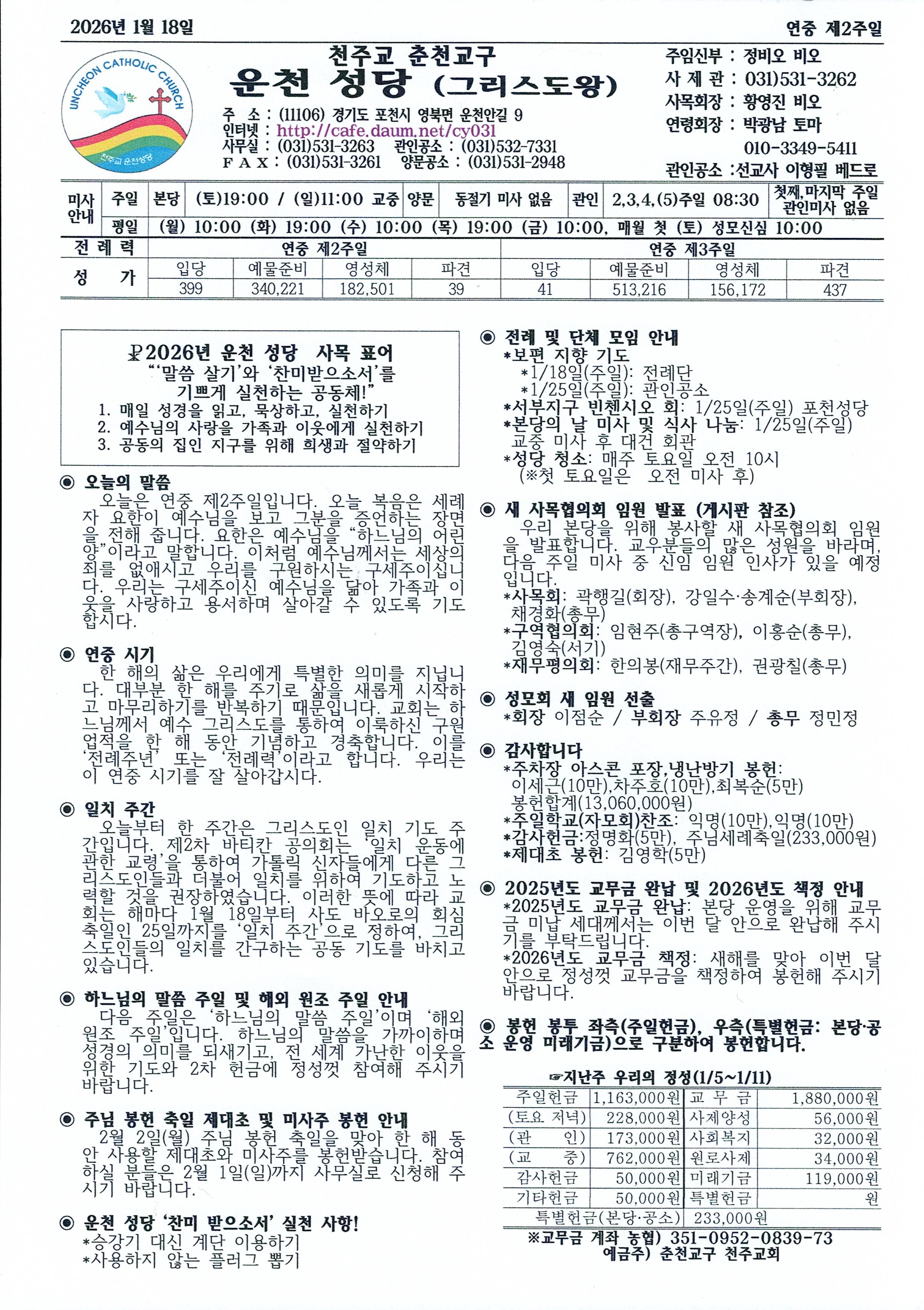 운천-2026년 1월 18일 연중 제2주일(일치 주간)