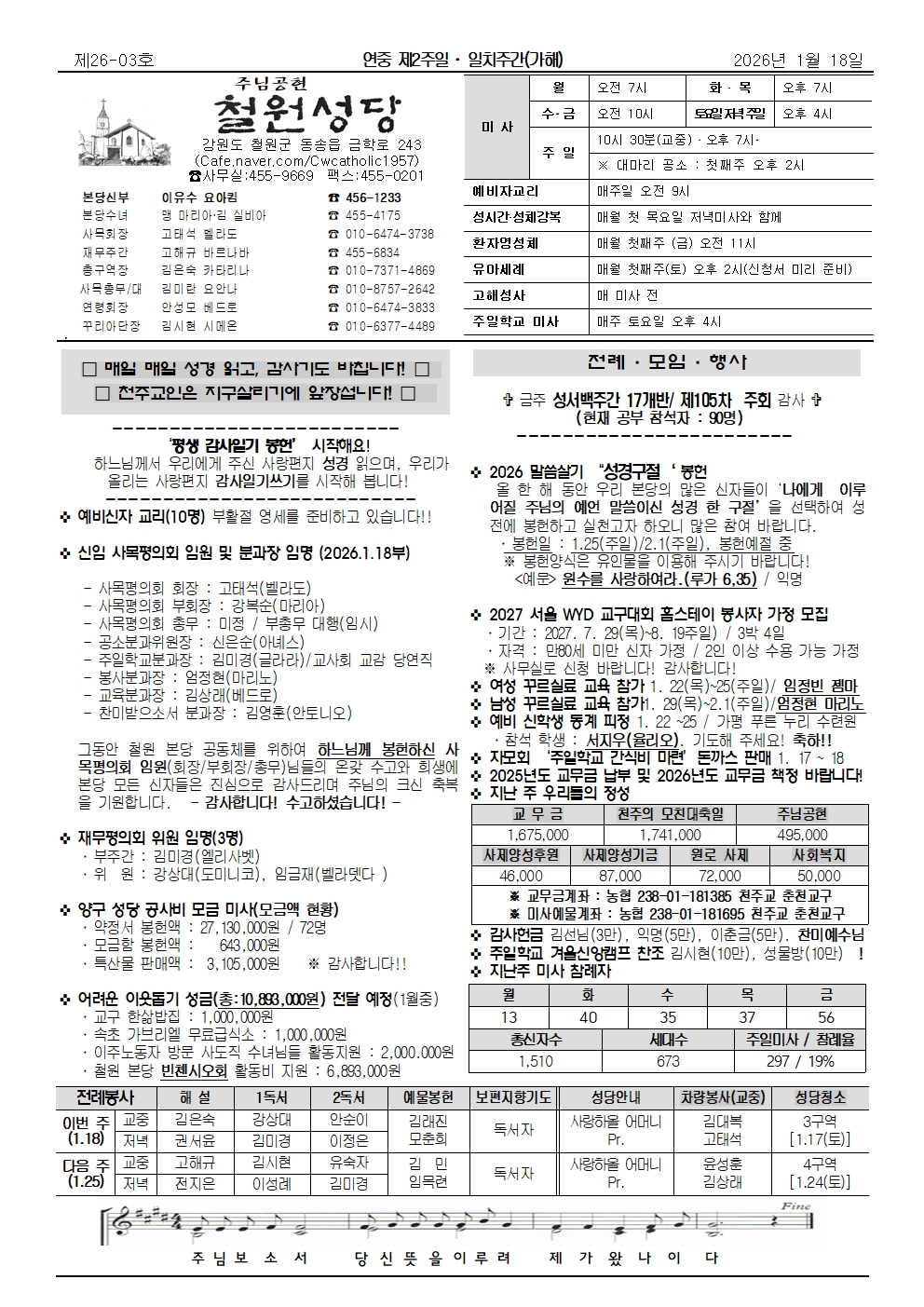 철원 - 2026년 1월 18일 연중 제2주일(일치주간)가해