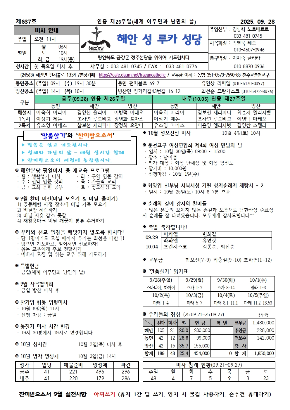 동명동 - 2025년 09월 28일 연중 제 26주일 / 세계 이주민과 난민의 날