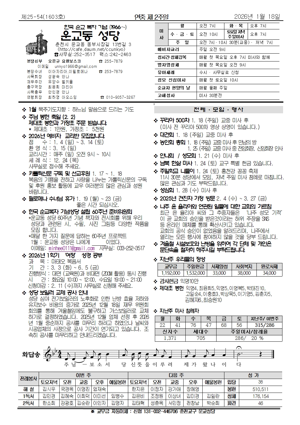 운교동- 2026년 1월 18일 연중 제 2주일