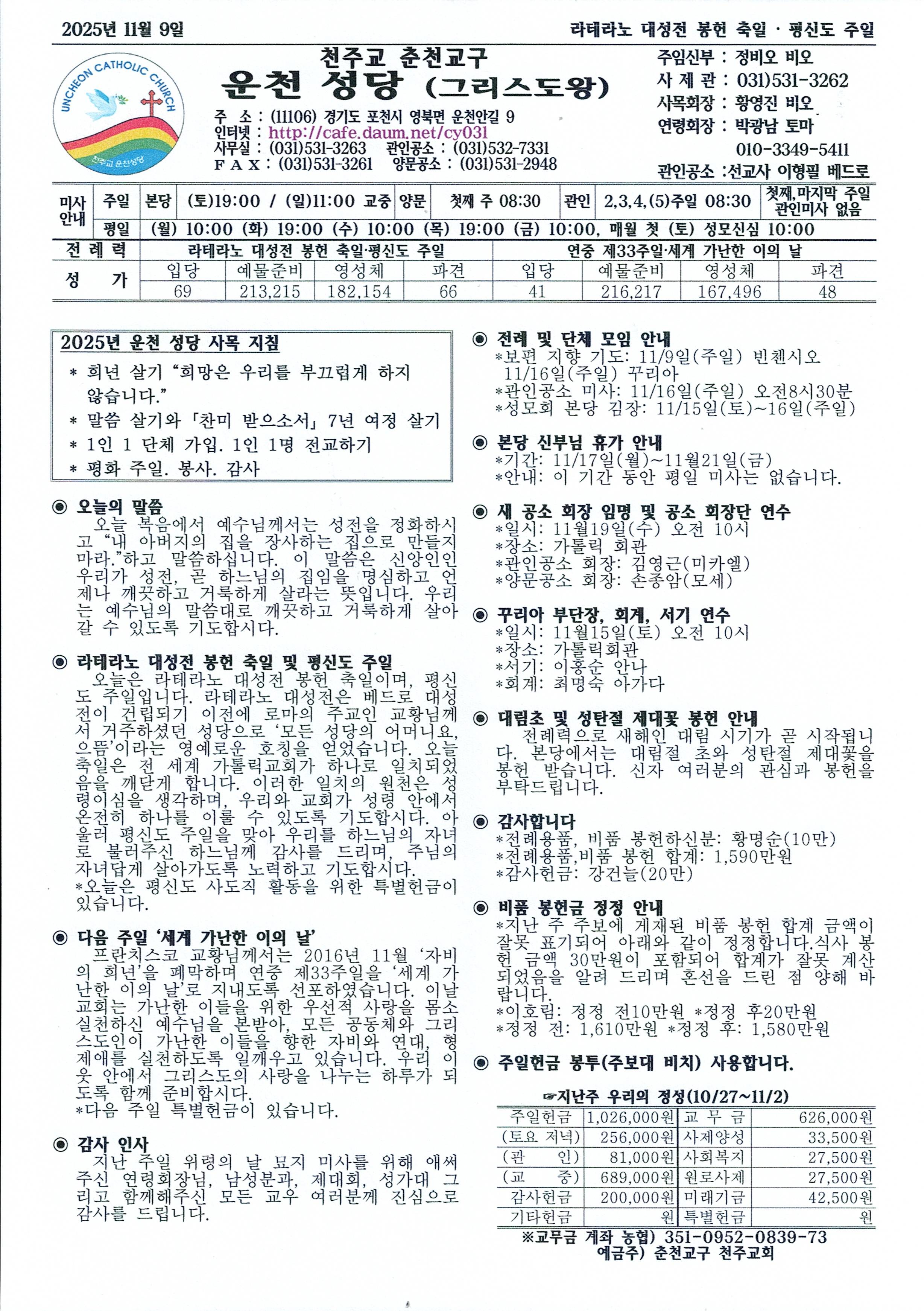 운천-2025년 11월9일 라테라노 대성전 봉헌 축일 (평신도 주일)