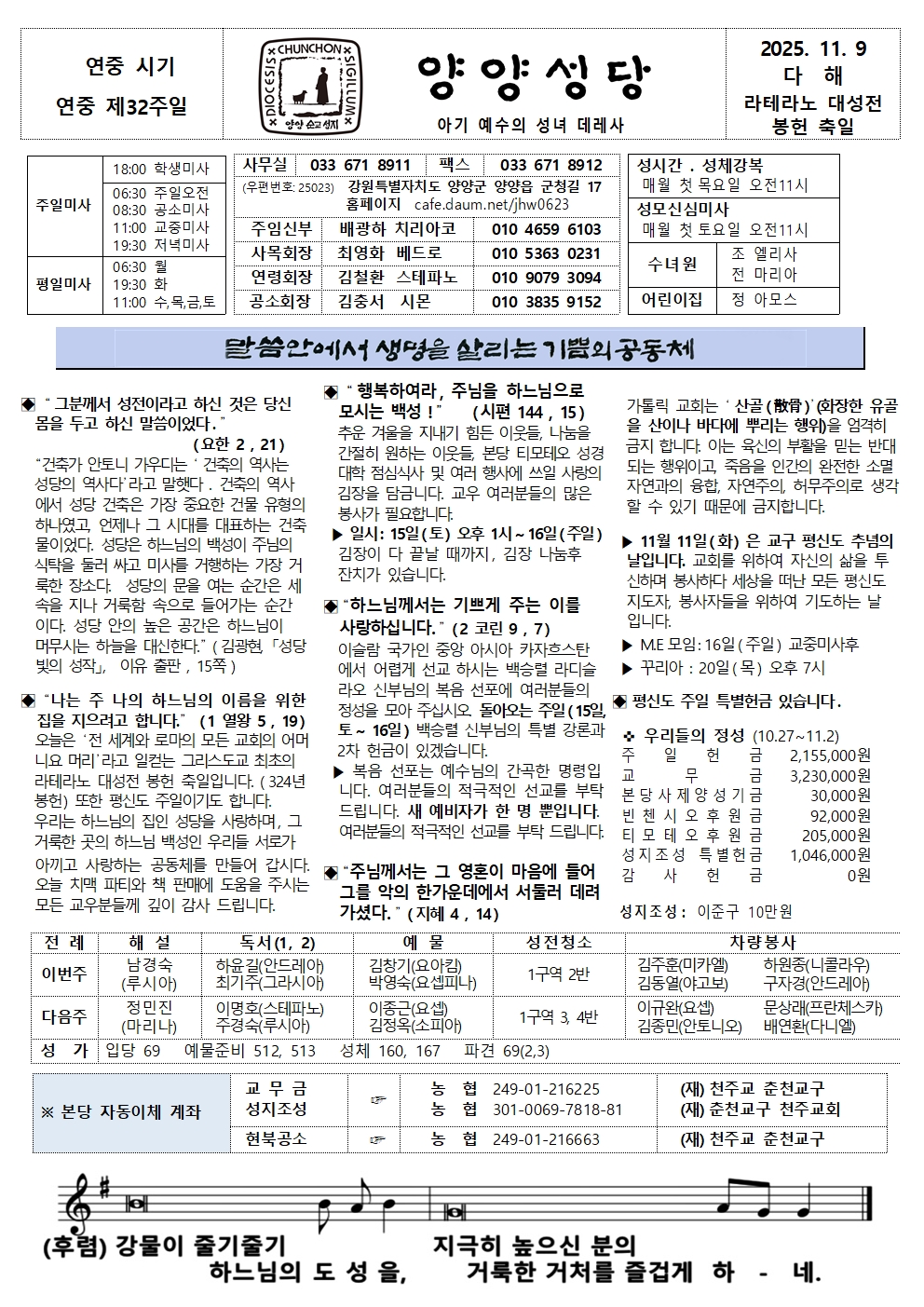 양양 - 2025년 11월 9일 라테라노 대성전 봉헌 축일(평신도 주일)