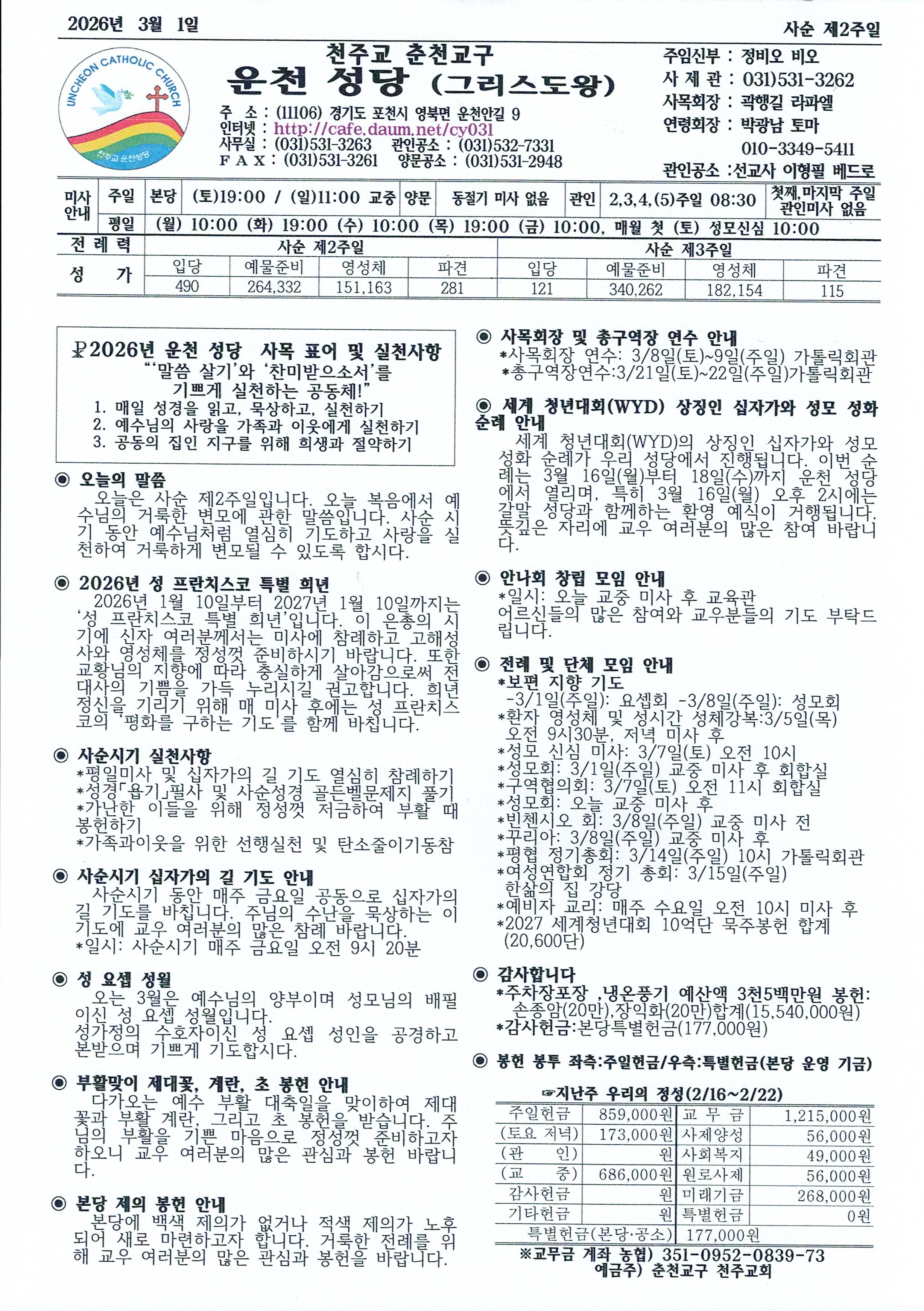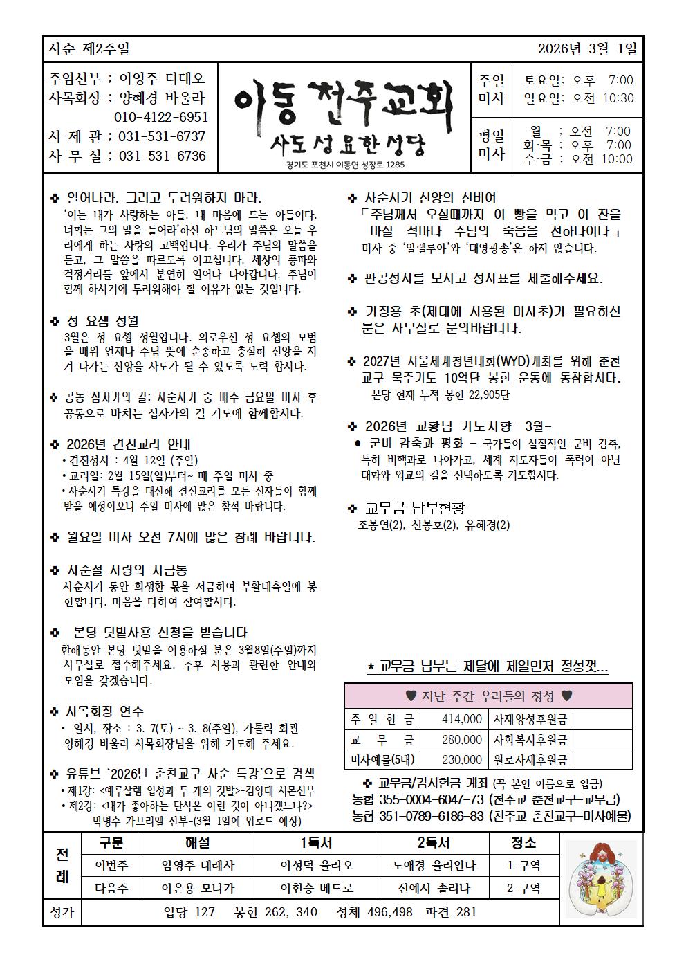 운천-2026년 3월 1일 사순 제2주일