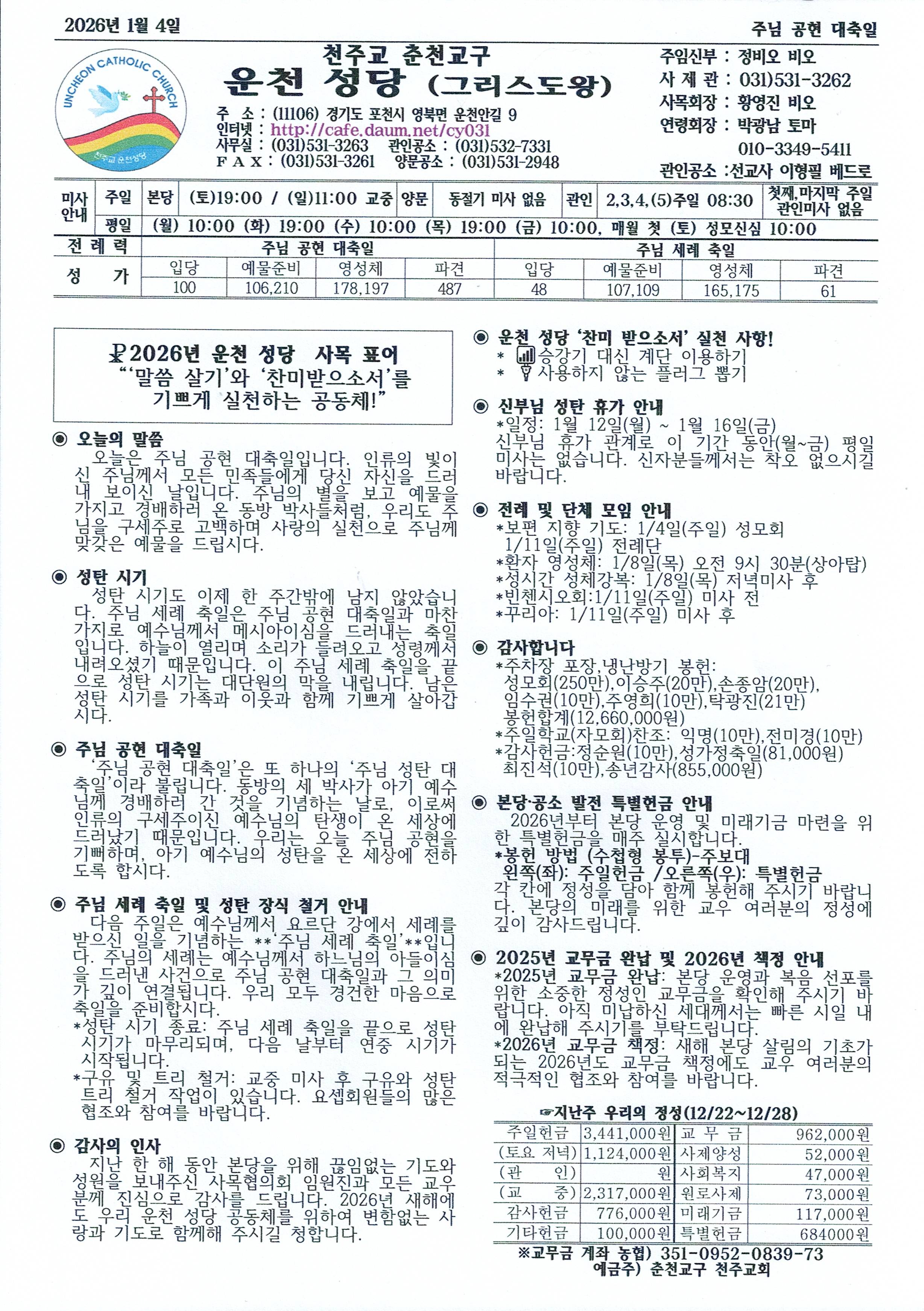 운천-2026년 1월 4일 주님 공현 대축일