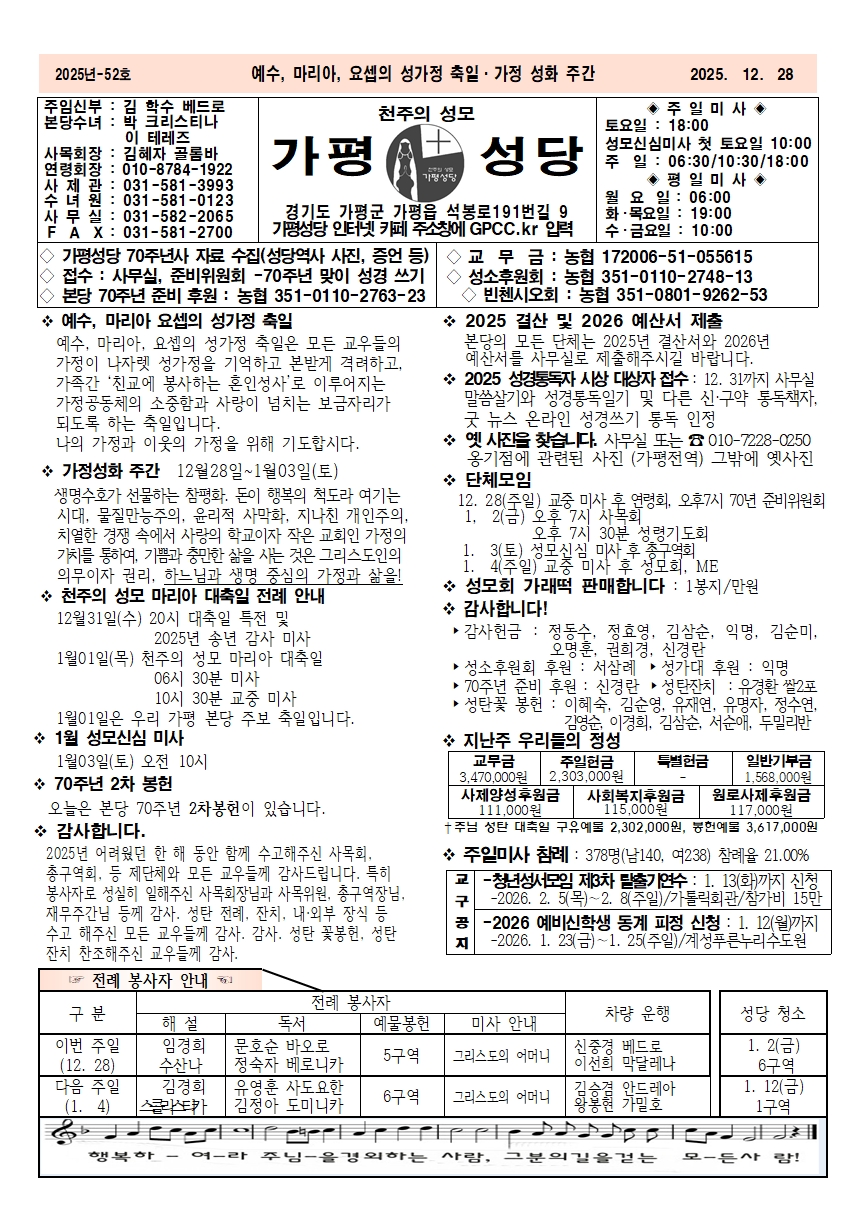 가평 - 2025. 12. 28 예수, 마리아, 요셉의 성가정 축일ㆍ가정 성화 주간