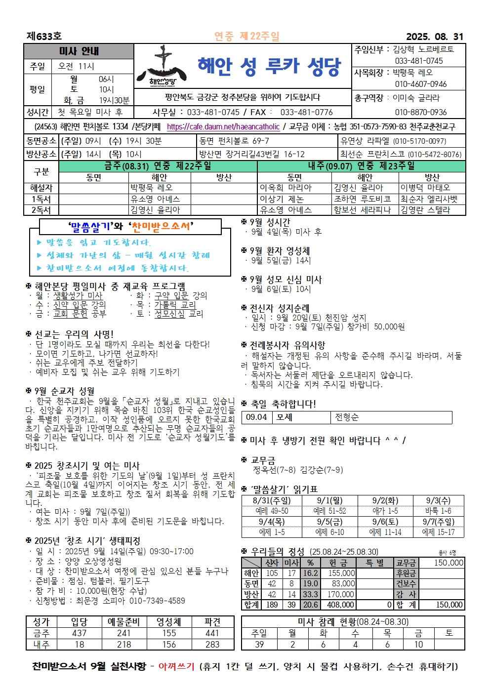 묵호 - 2025년 8월 31일, 연중 제22주일