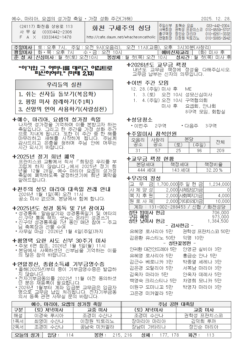 원통 - 2025년 12월 28일 예수, 마리아, 요셉의 성가정 축일