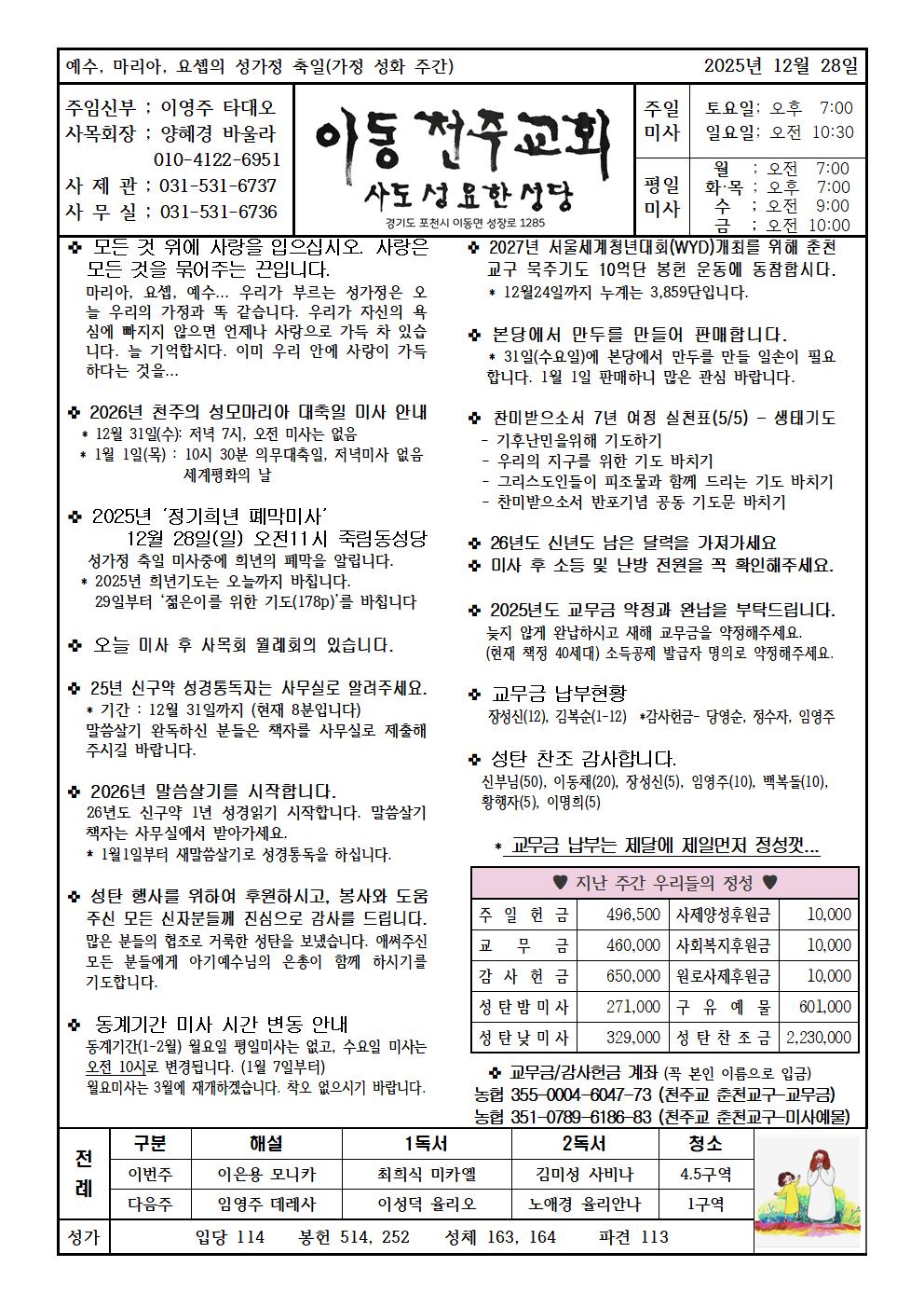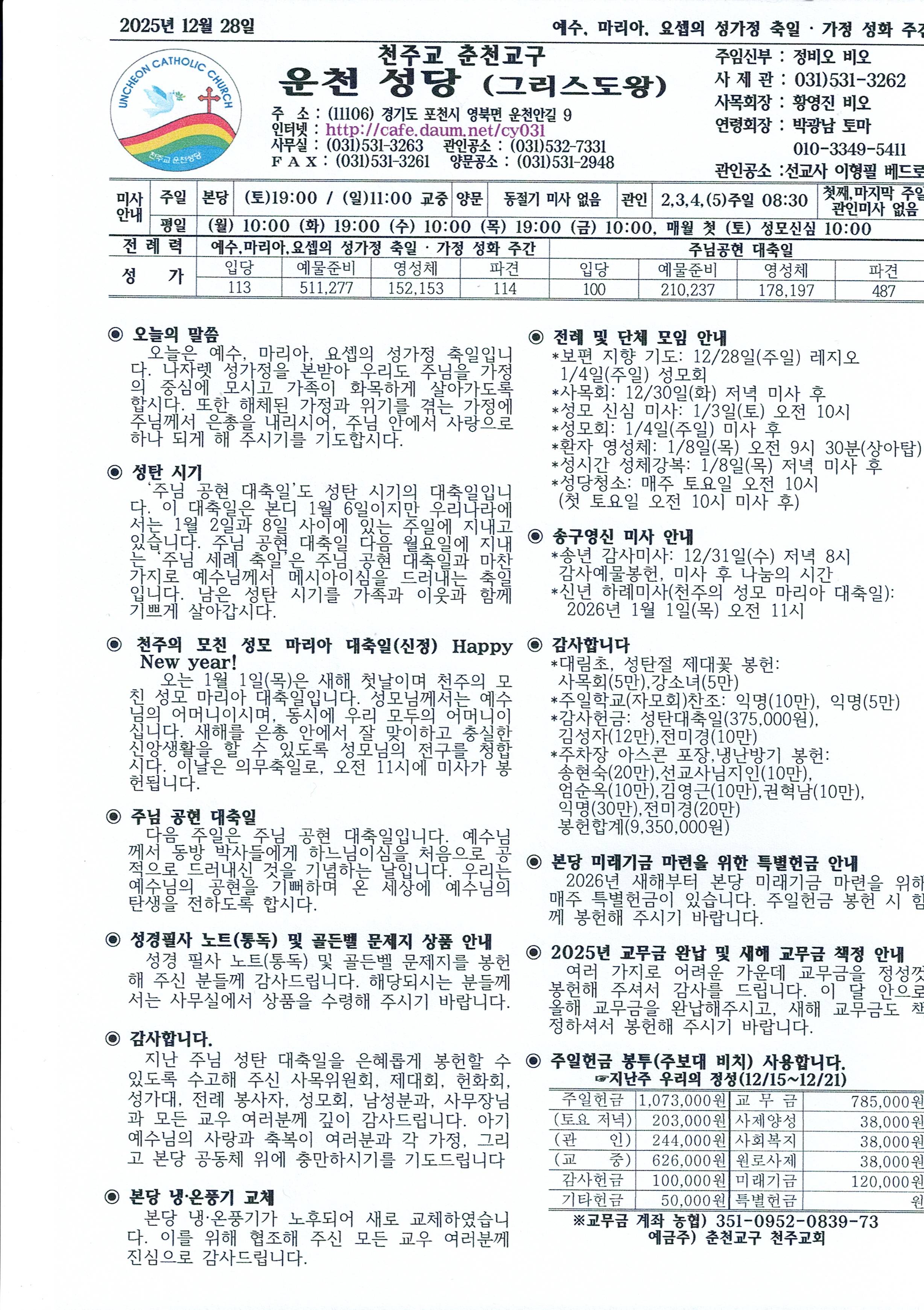 운천-2025년 12월 28일 예수, 마리아, 요셉의 성가정 축일 (가정 성화 주간)