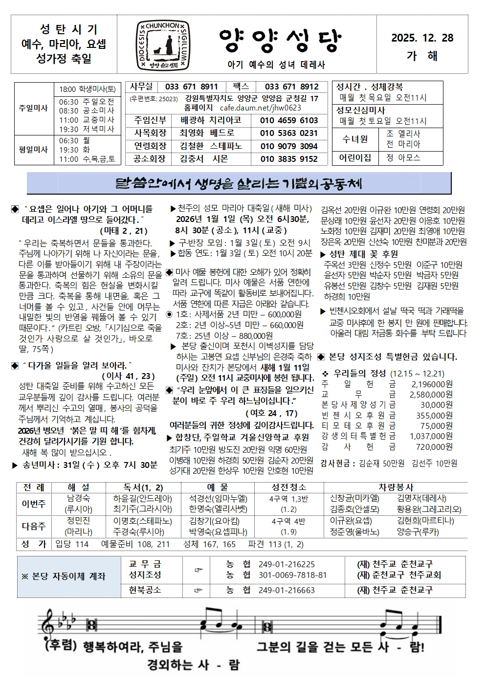 양양 - 2025년 12월 28일 예수, 마리아, 요셉의 성가정 축일